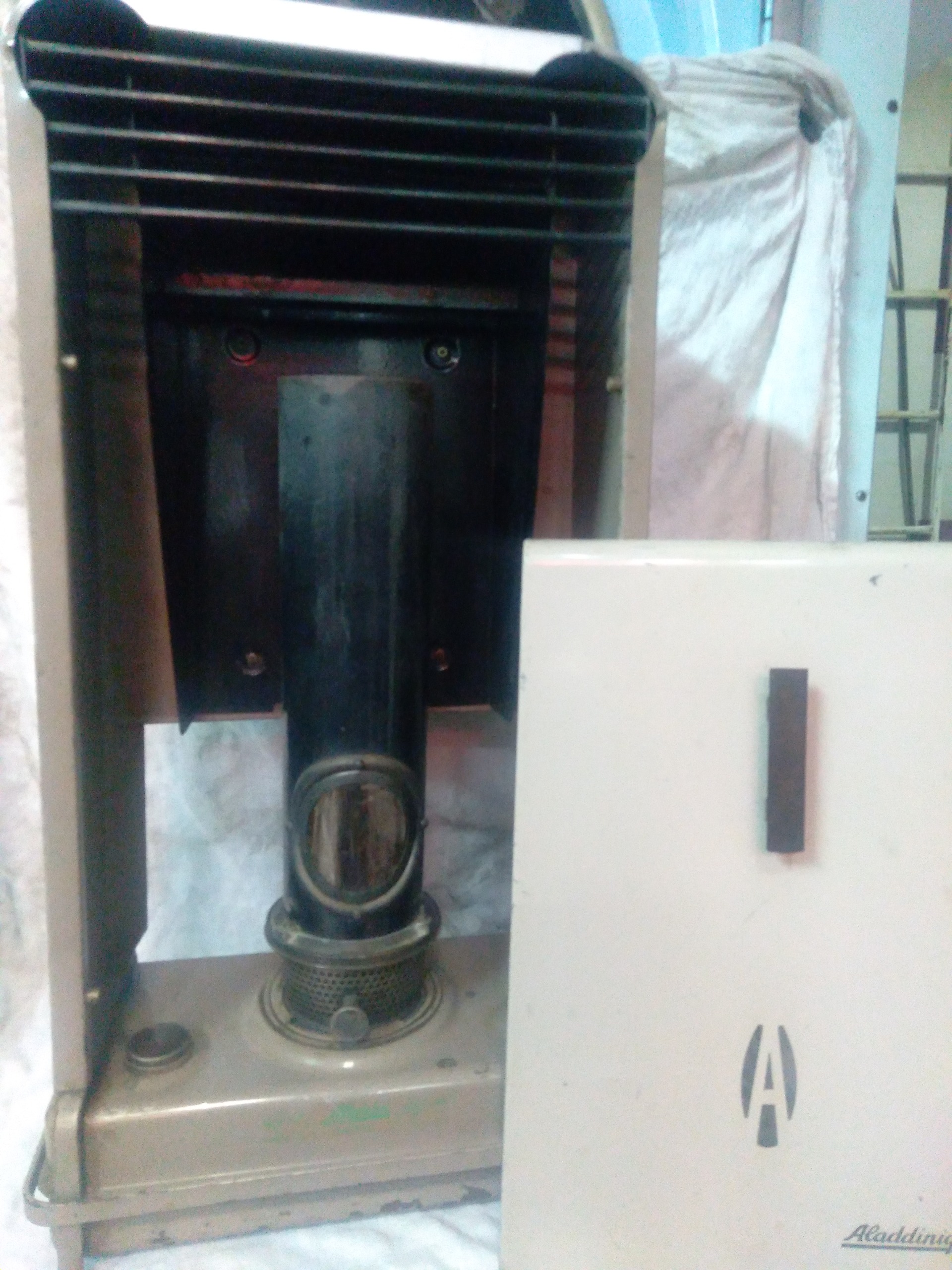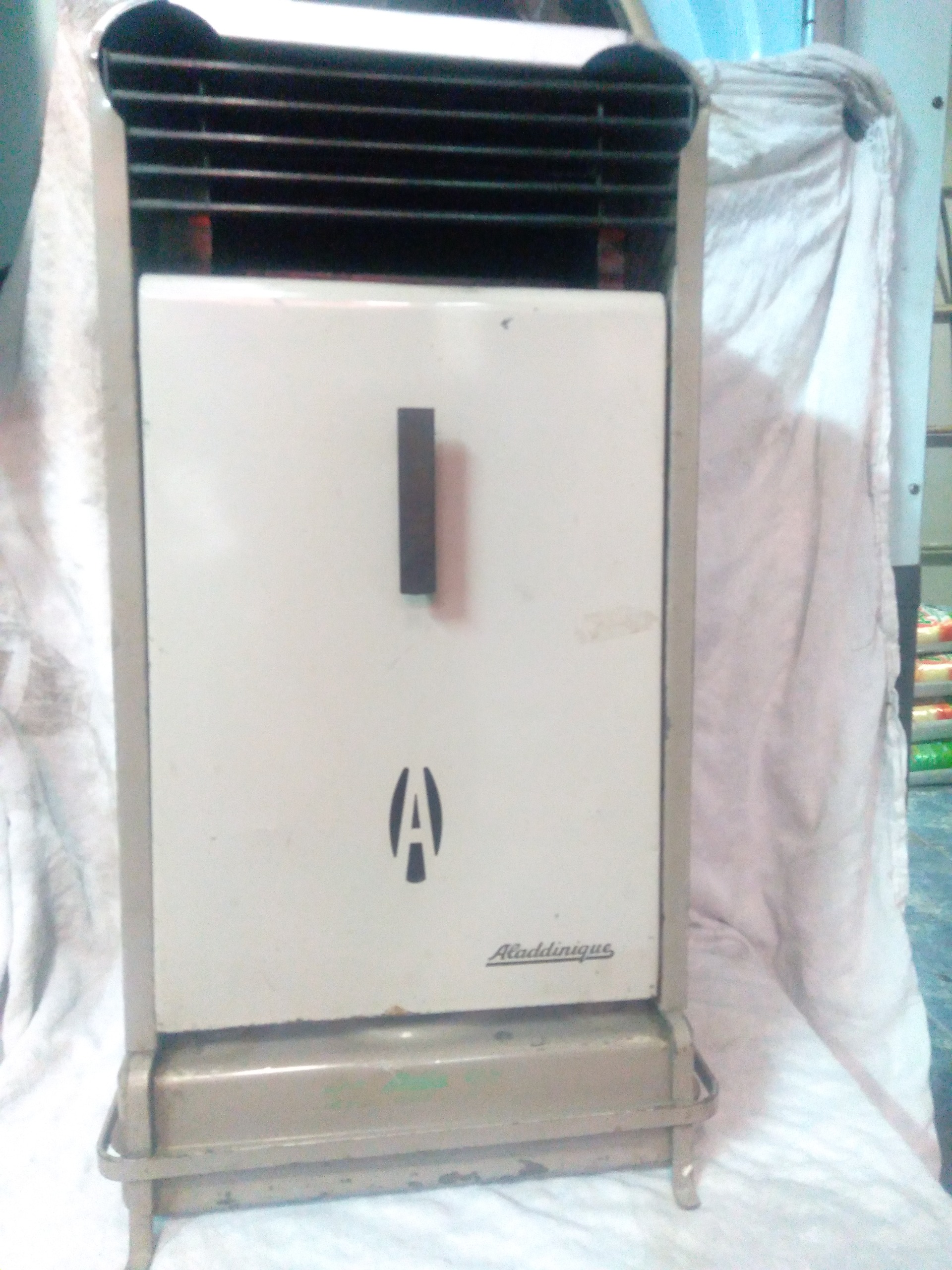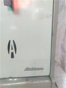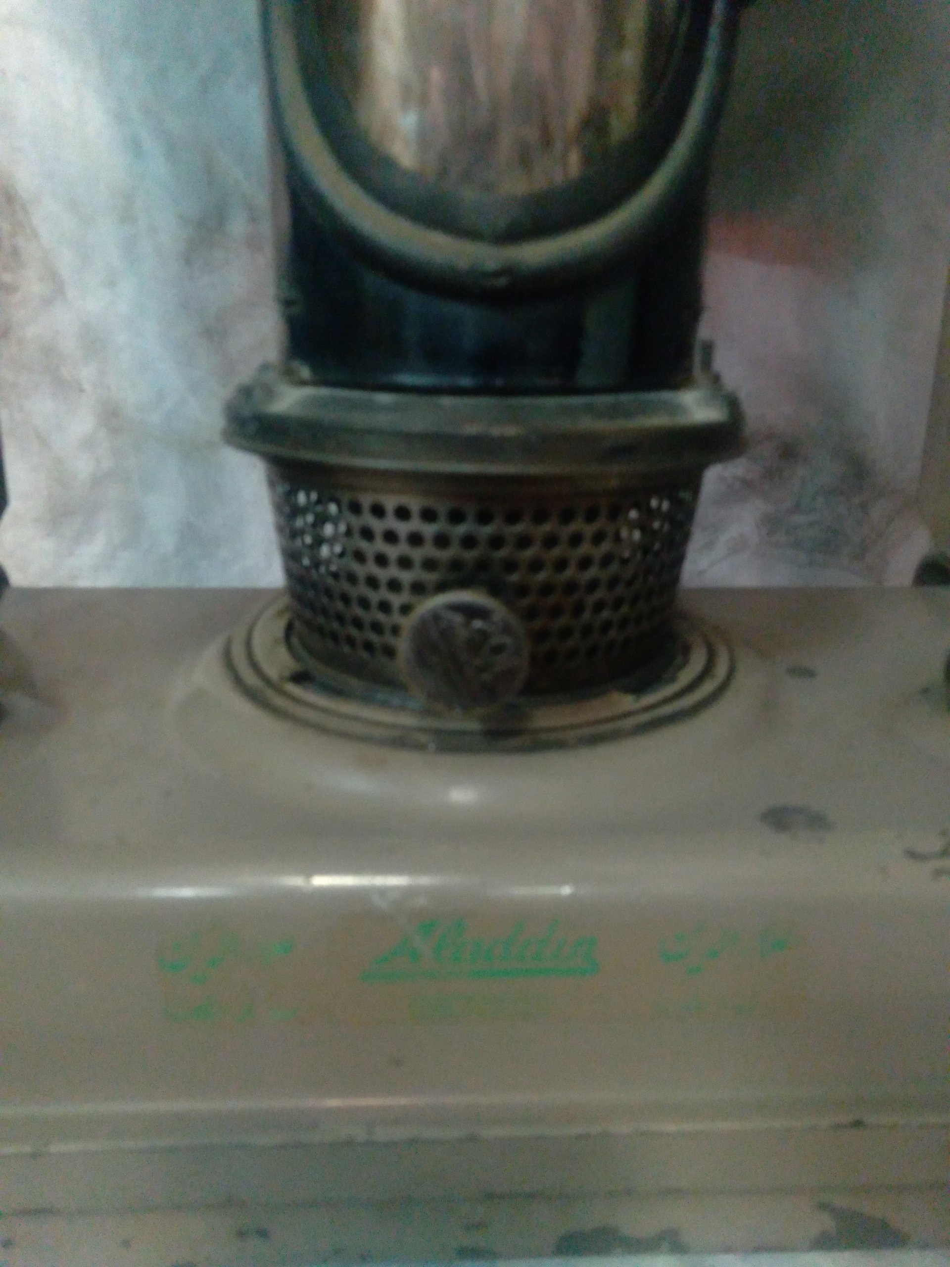 بخاری نفتی اینگلیسی مارک علاالدین سالم درحال کار ماشین وخودرو همه برنجی با مارک شرکت سازنده کمیاب و کلکسیونی