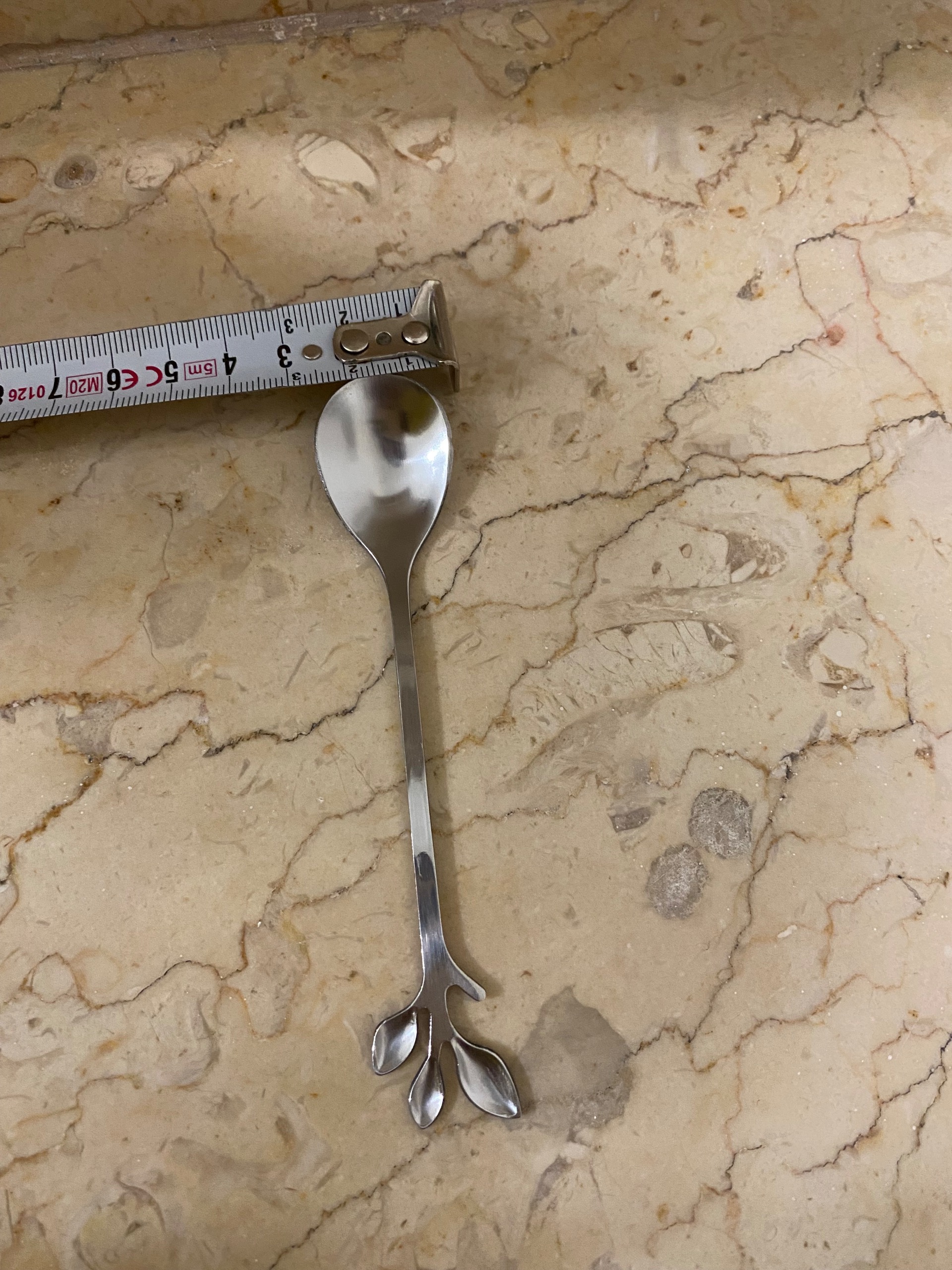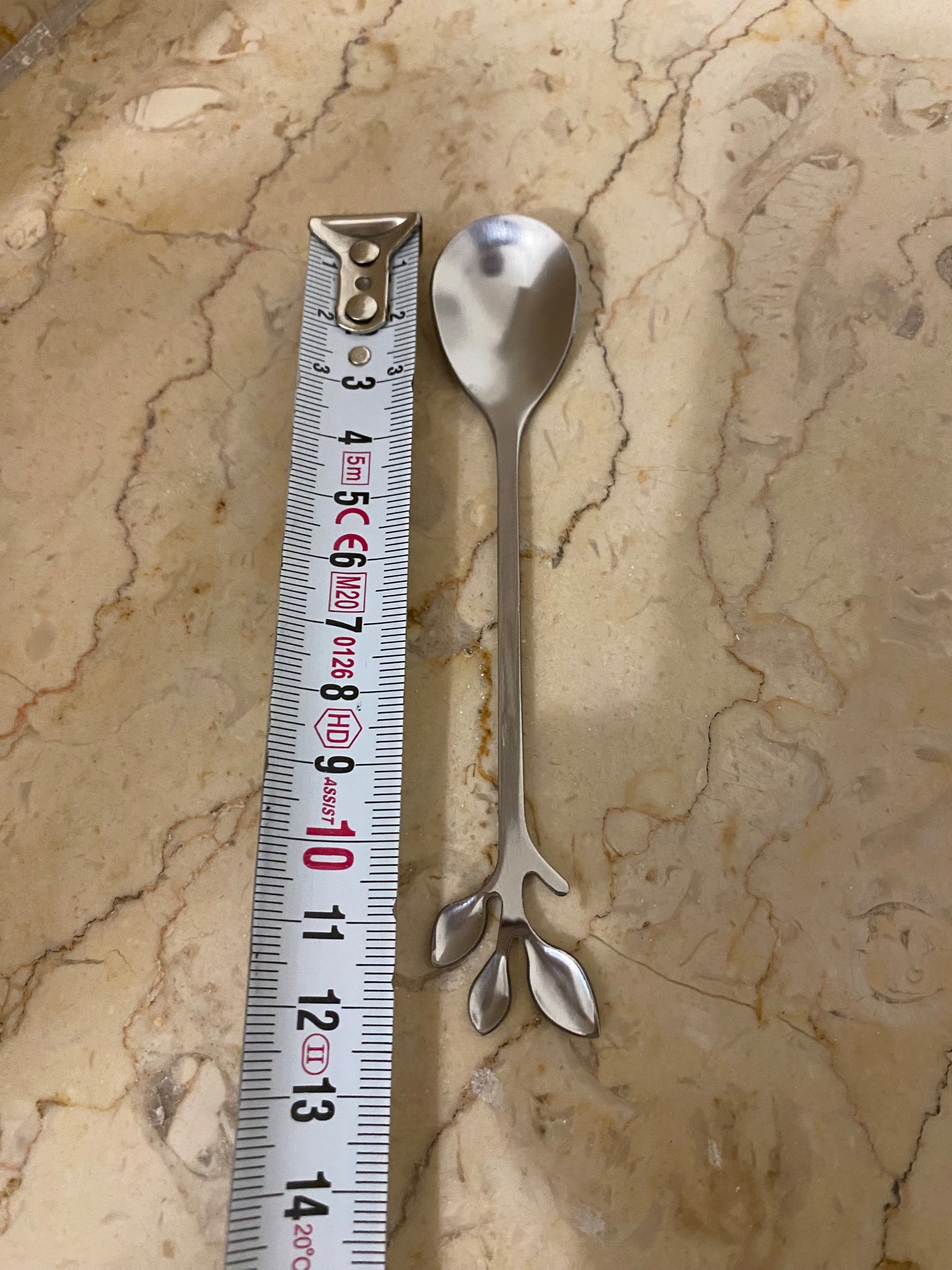 قاشق چایی خوری طرح برگ مربا خوری شربت خوری نقره ای فلزی استیل فانتزی آهنی 6 تاعددی قد 12