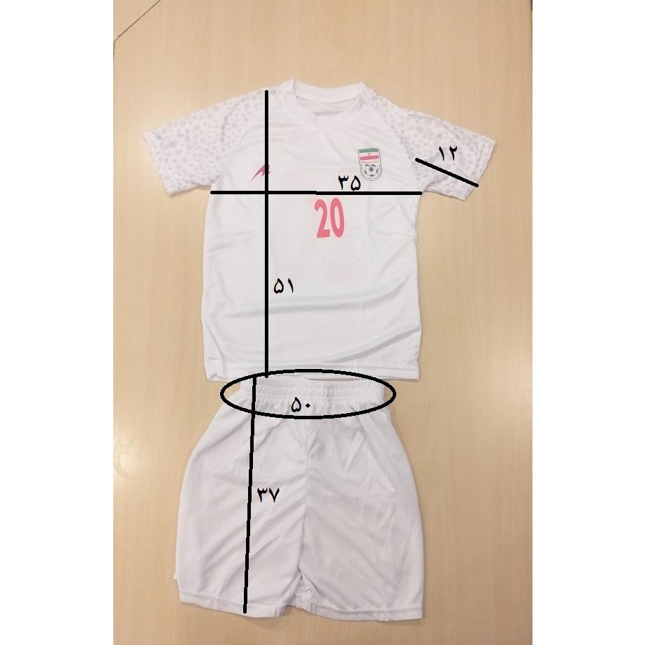 تولید ایران ، لباس تیم ملی فوتبال ، شماره پشت سردار آزمون ، برای بچه های دبستانی ، اندازه دقیق بلوز و شورت در عکس سوم مشخص می باشد همراه با قیمت مناسب