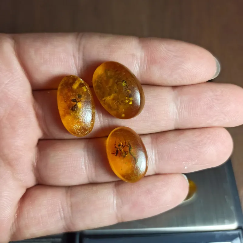 تعداد 10 عدد نگین کهربای روسی به وزن 18.21 گرم با حشرات و خزه و گیاهان طبیعی اما بافت کهربای روسی سنتتیک است، نگین ها بسیار باکیفیت و با ارزش افزوده بالا برای فروش تکی و نصب بر روی زیورآلات به قیمت هر عدد 145 هزارتومان در خدمت هستم