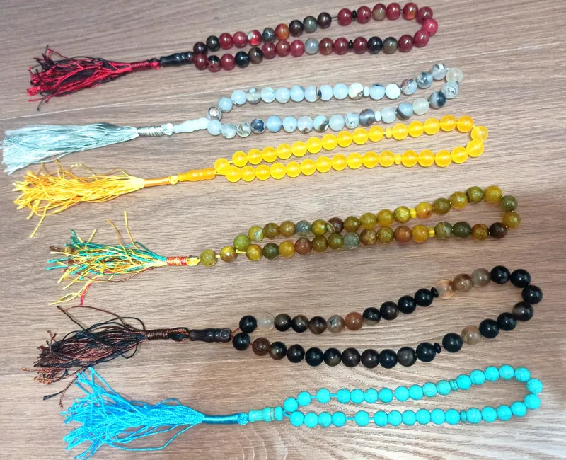 6 عدد تسبیح عقیق معدنی و فیروزه