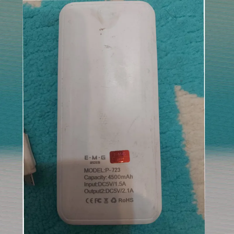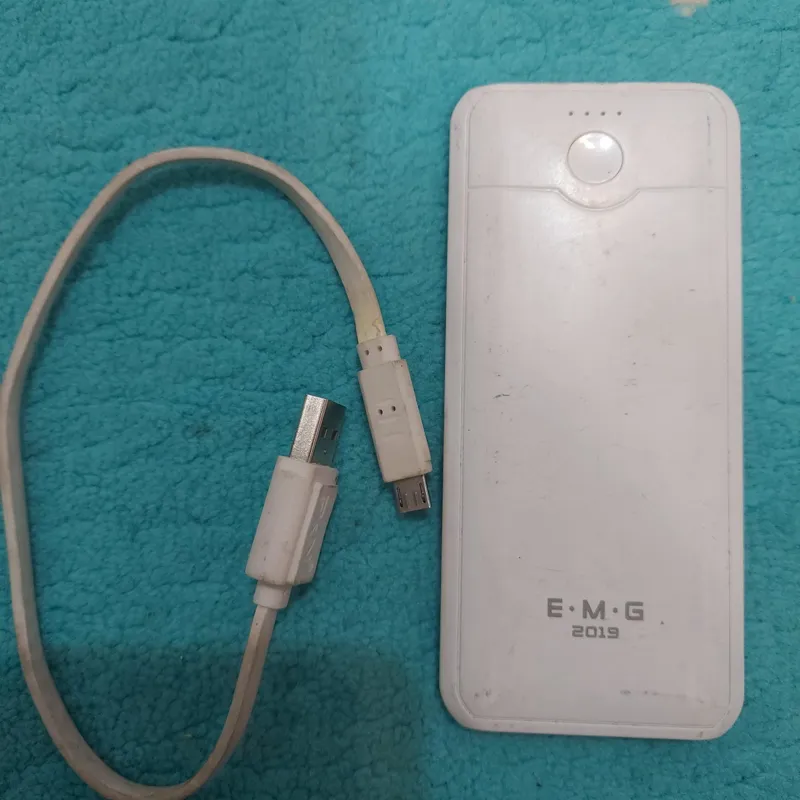 یک عدد پاور بانک مطابق شکل دارای چراغ قوه و کابل شارژ