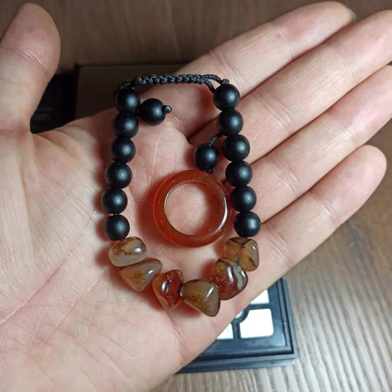ست و پک دو عددی دستبند و حلقه عقیق قهوه ای معدنی بسیار شیک و با انرژی درخدمتم