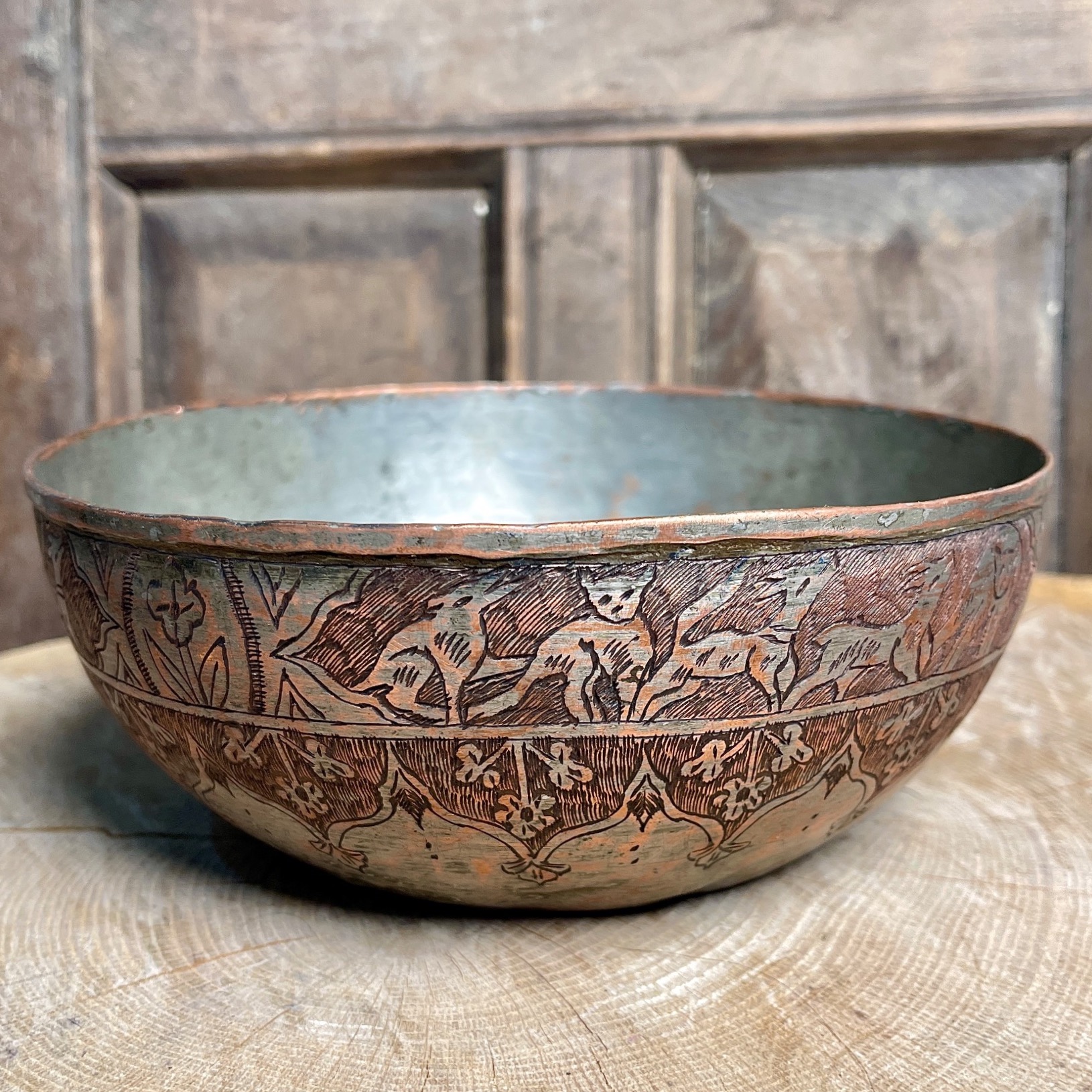 کاسه قلمکاری حیوان دار مسی
