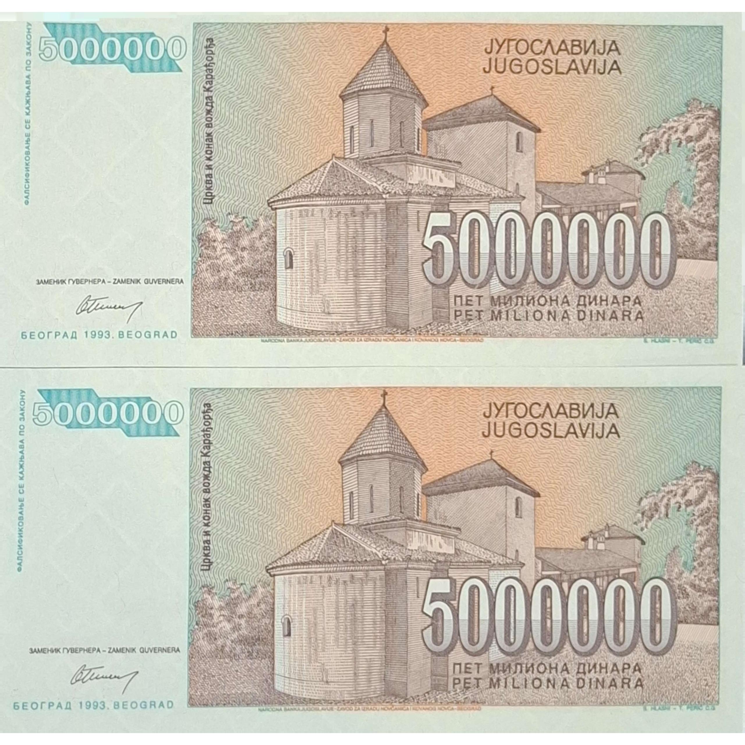 جفت بانکی کلکسیونی و زیبا 5000000 دینار یوگسلاوی