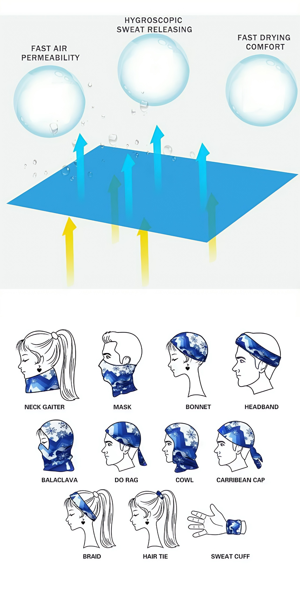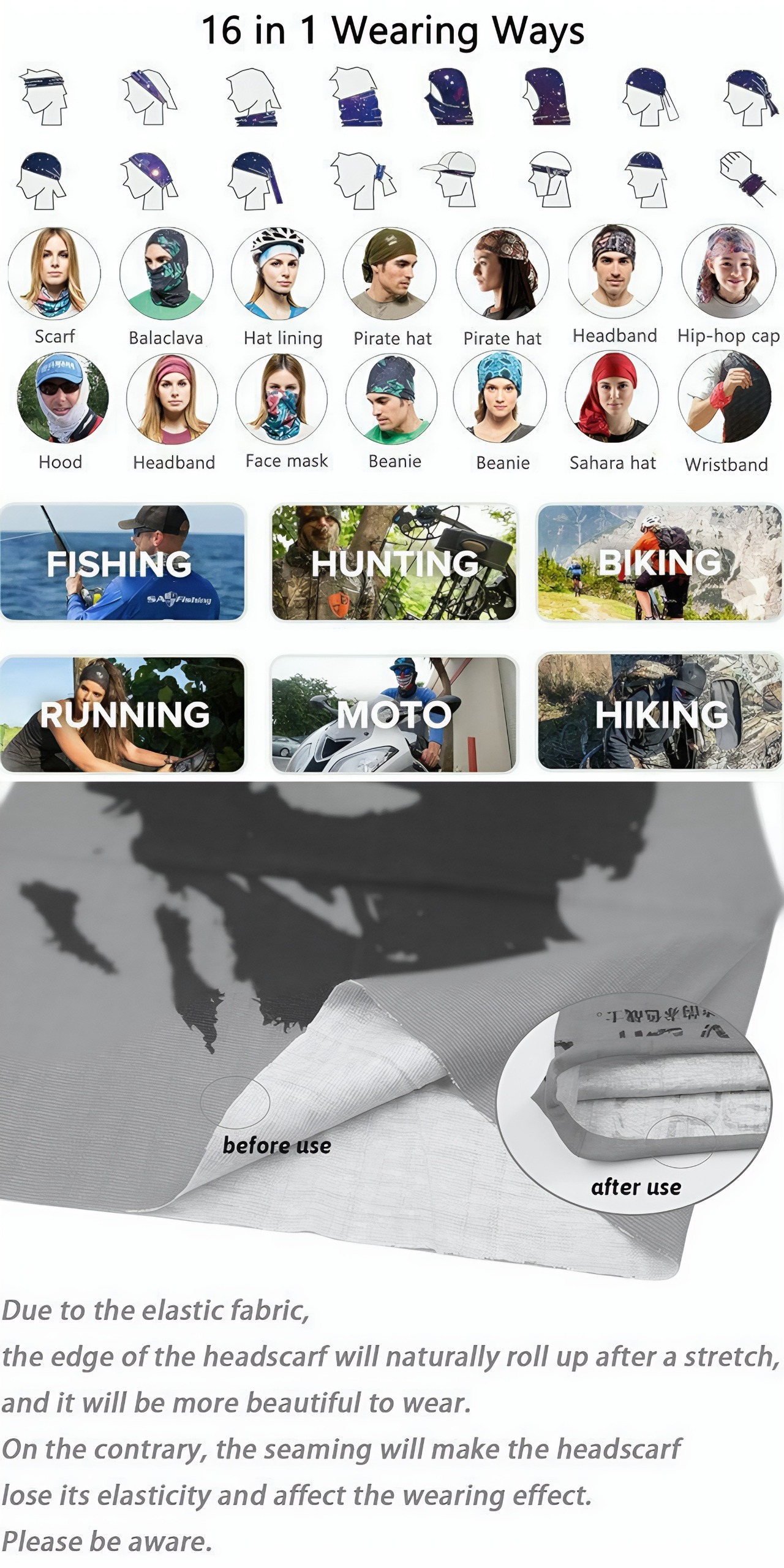 اسکارف چندکاره با پارچه نرم و لطیف و کشسان، مناسب جهت فعالیت های ورزشی، طبیعت گردی، سفر، کوهنوردی، موتور و دوچرخه سواری، ماهیگیری، شکار و..