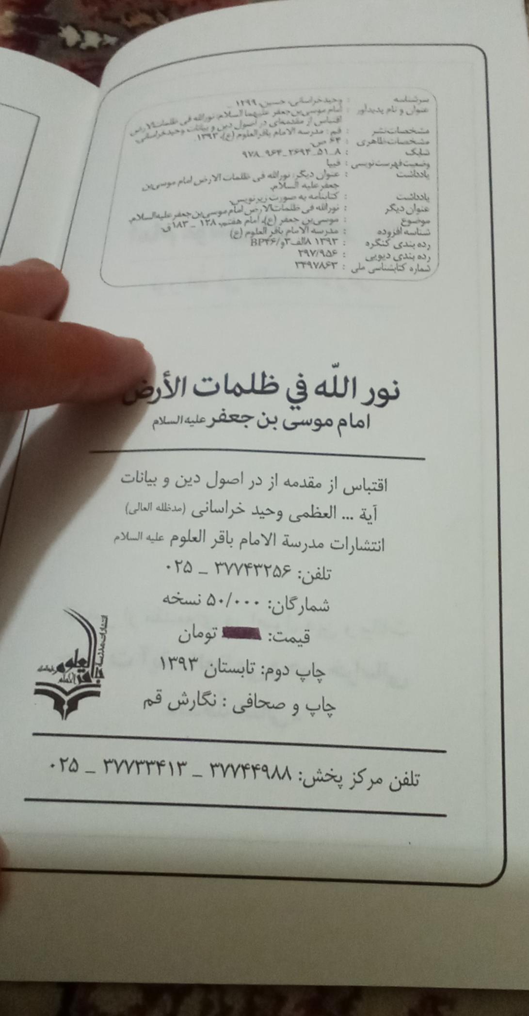 امام موسی بن جعفر نورالله فی ظلمات الارض.ک586
