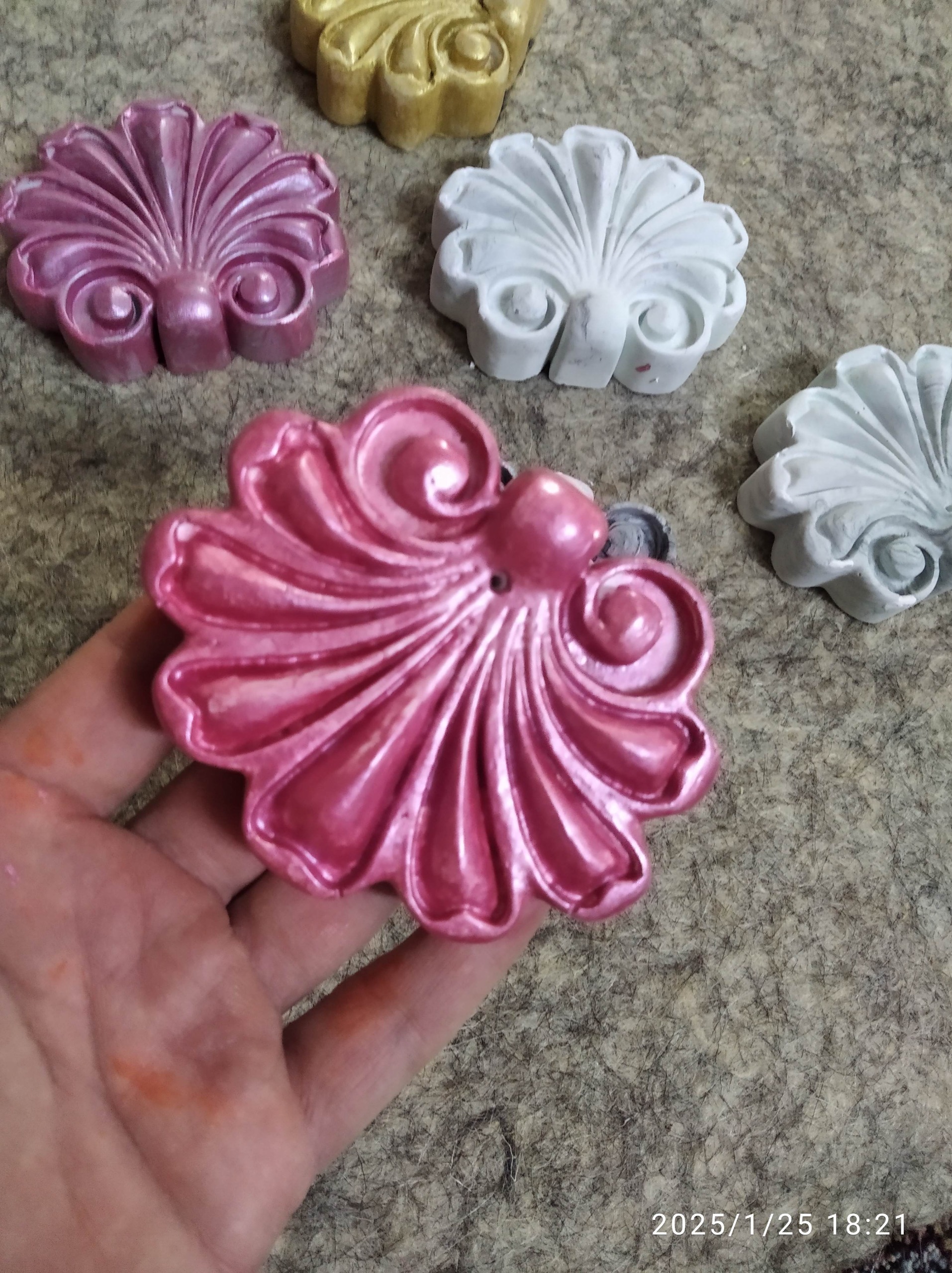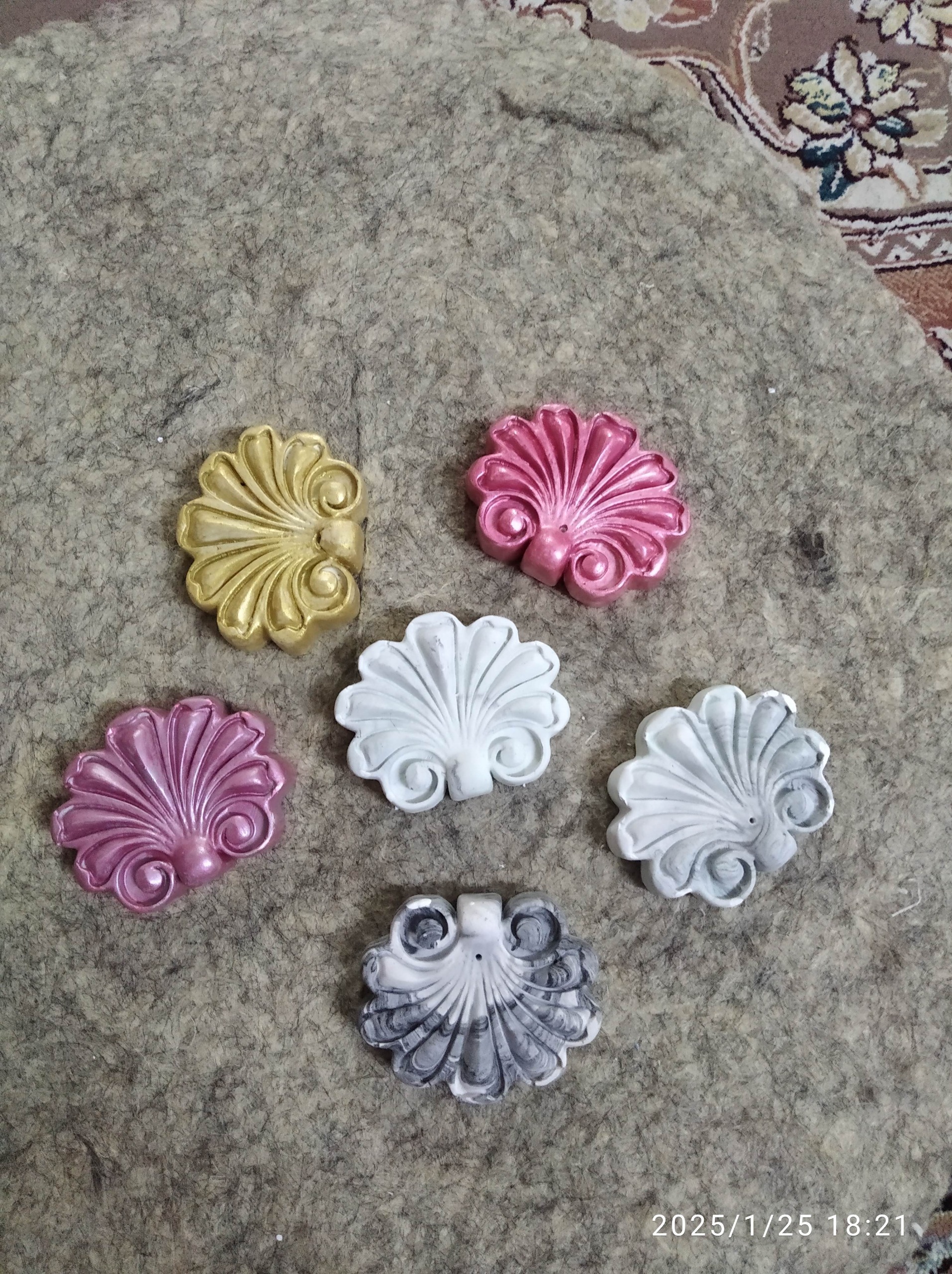 شش عدد جاعودی زیبا مطابق تصاویر از جنس سنگ مصنوعی سه تا رنگ شده وسه تا بدون رنگ ومانند سنگ زیبا هستند