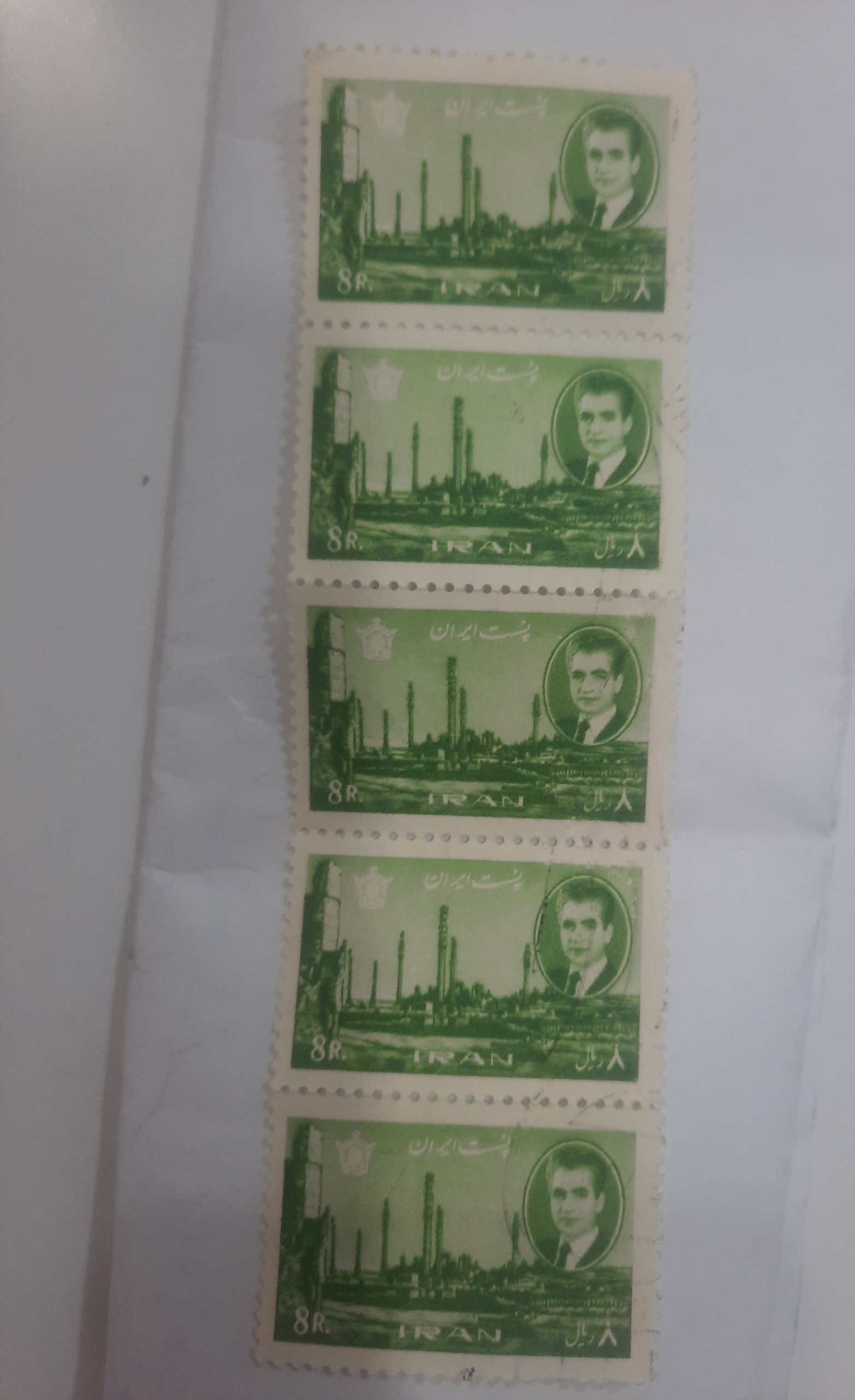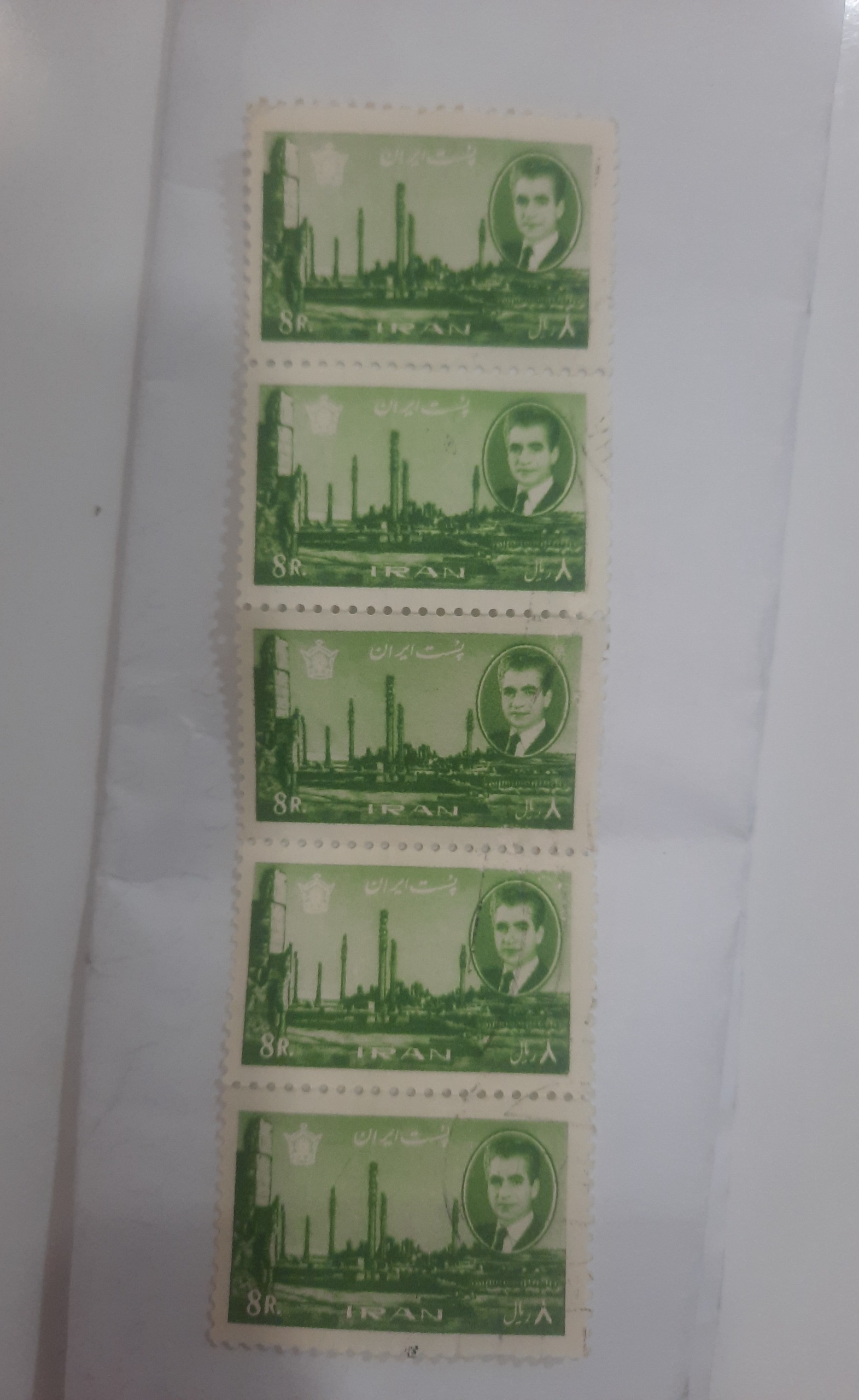 بلوک پنج عددی افقی ،هشت ریالی محمد رضا شاه طبق عکس ارسال می شود
