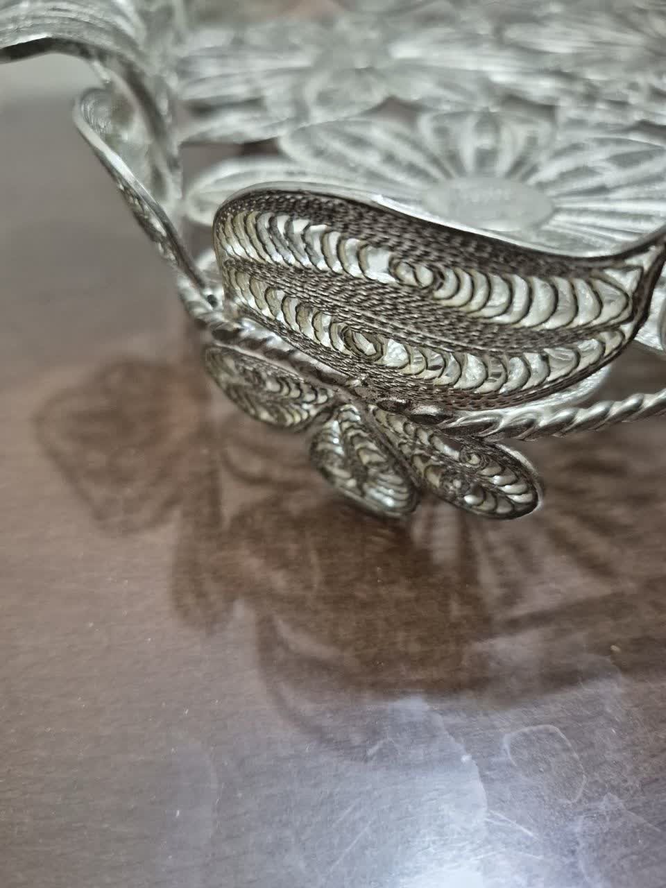 سینی ملیله دست ساز بسیار زیبا استفاده شده ابعدر دسته تا دسته 44سانت و بدون دسته 36سانت