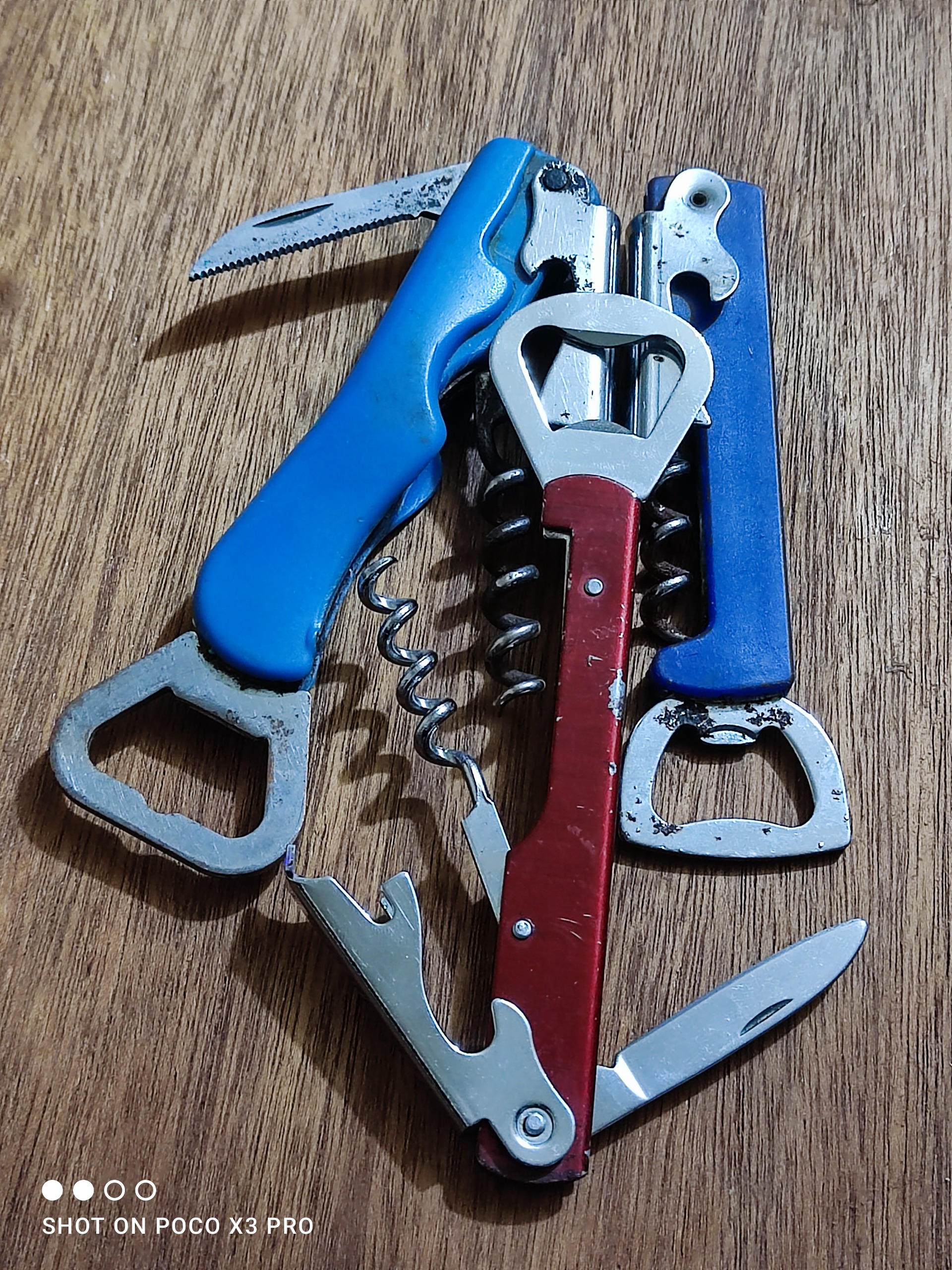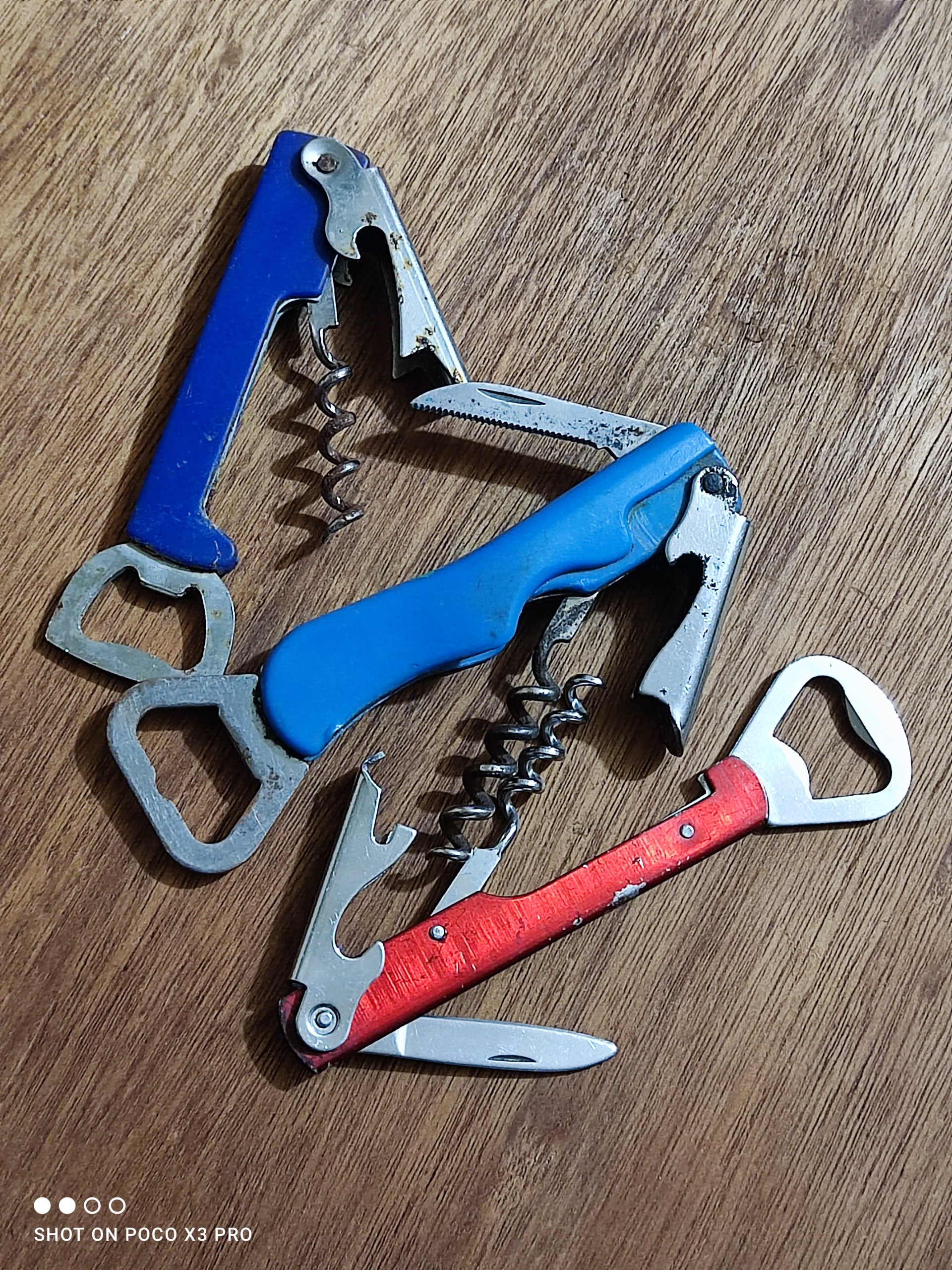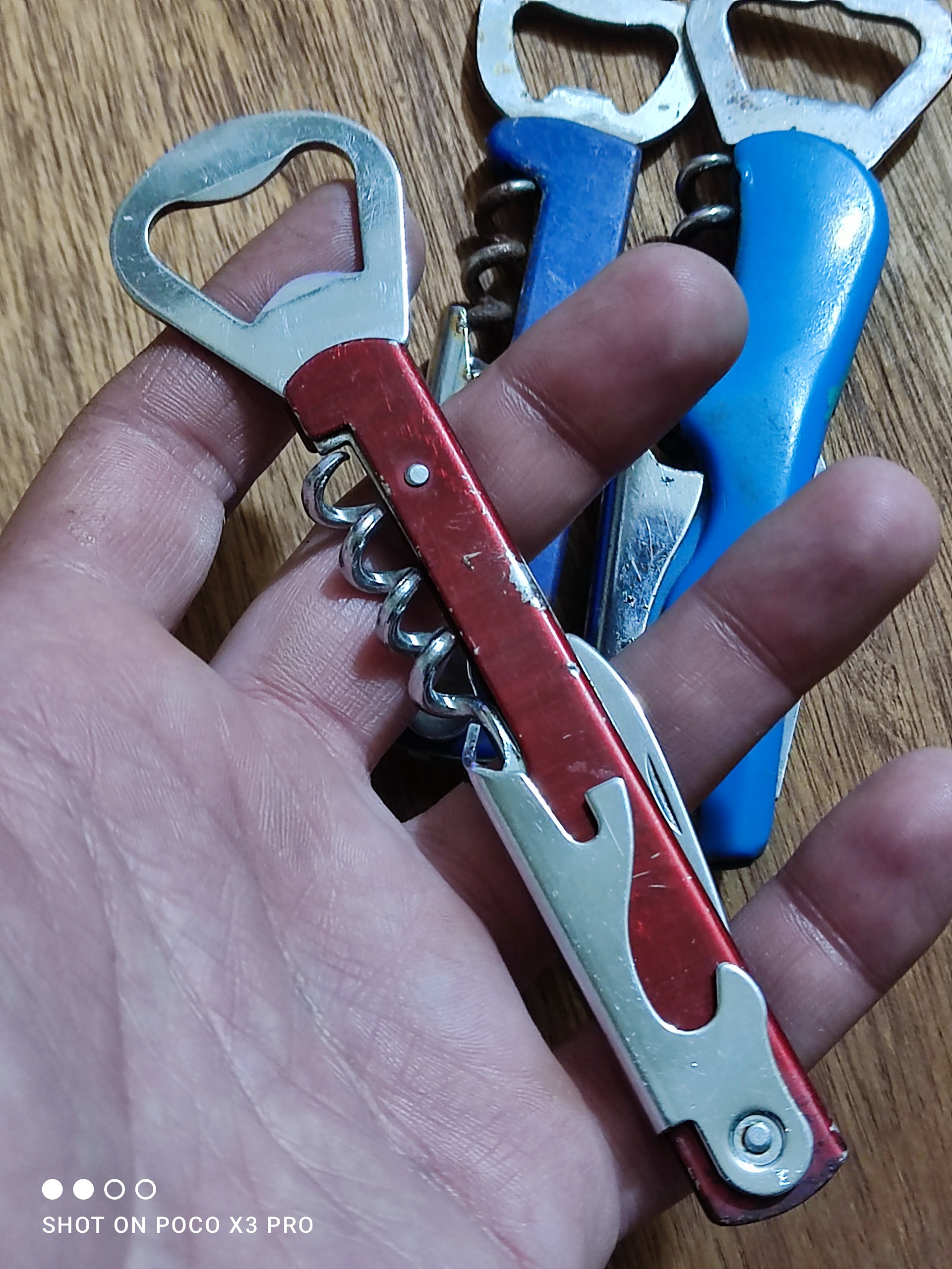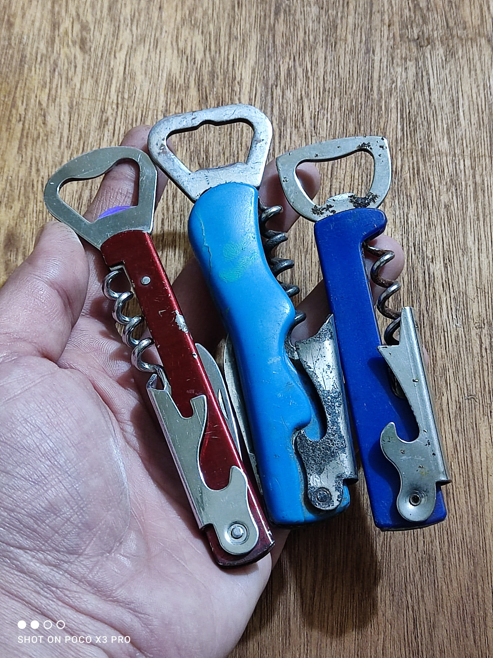 سه عدد دربازکن چندکاره قدیمی مطابق تصاویر قرمزه در حد نو هست ولی اون دوتای آبی رنگ دست دومه مطابق تصاویر قیمت برای هر سه میباشد