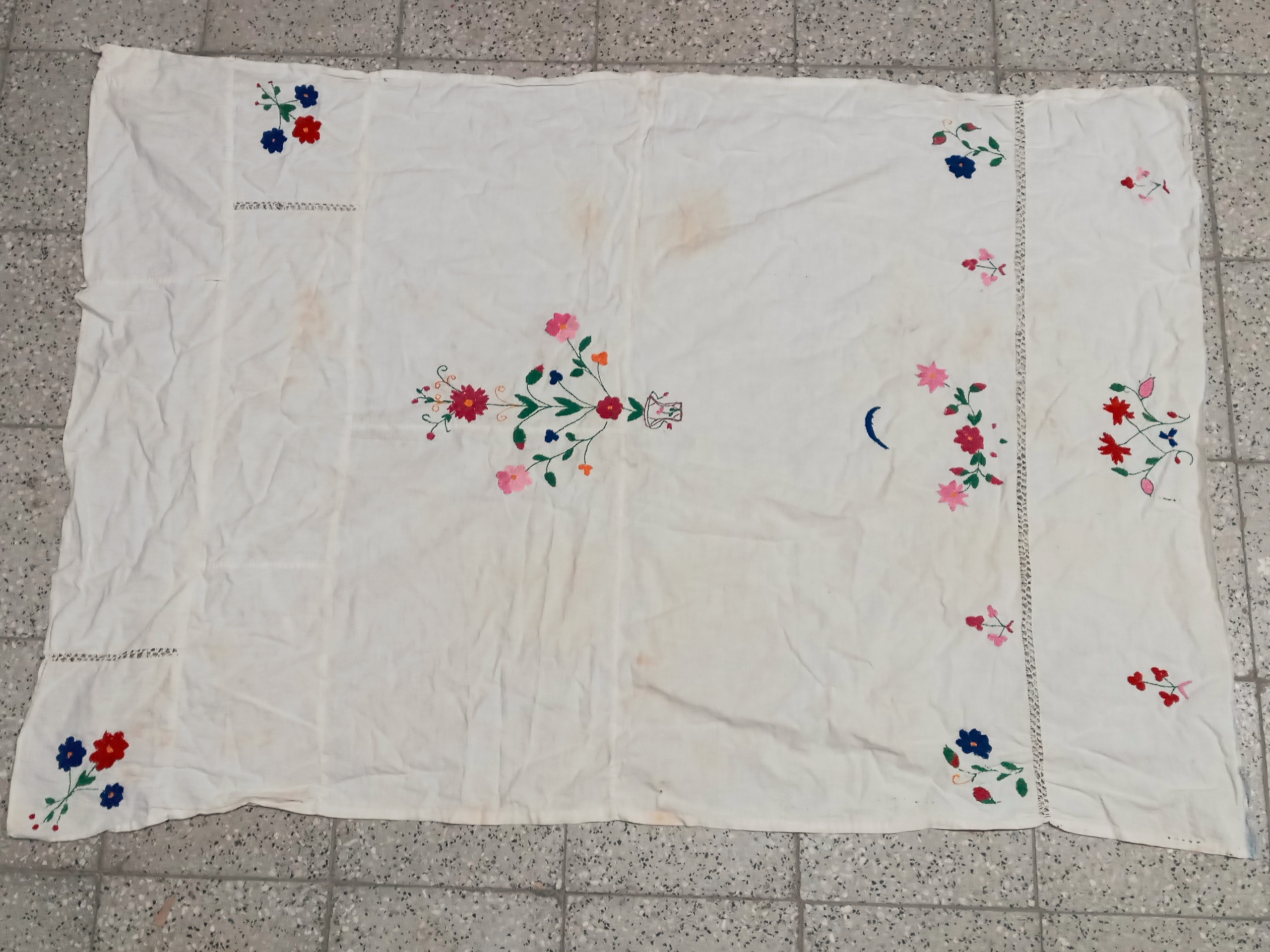 کیفیت نطابق تصویر .قدمت پهلوی .گلدوزی ها کار دست .سایز 90 در 130 سانت .نسبت به قدمت لک و چروک دارد باید شسته و اتو شود.