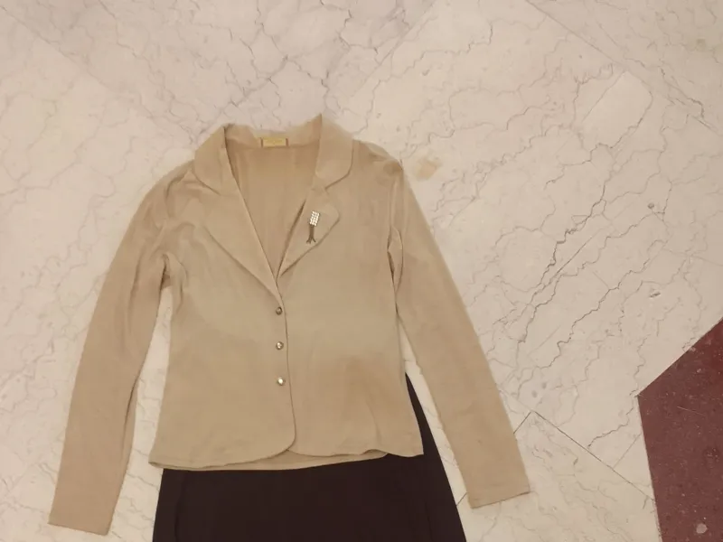 کت دامن کرم قهوه ای ساده مجلسی بلند 38 xl 40 زنانه دخترانه خارجی کره ای