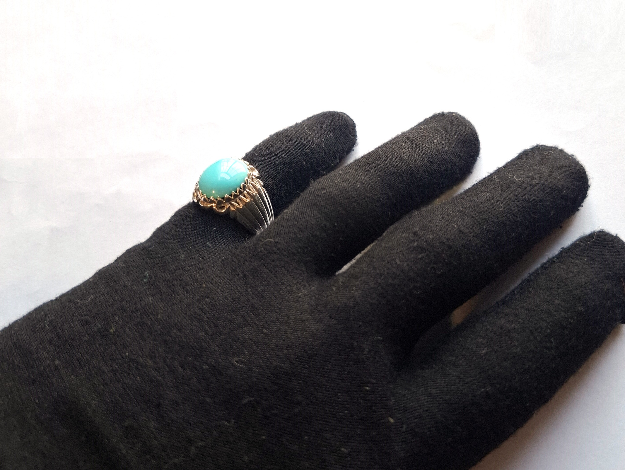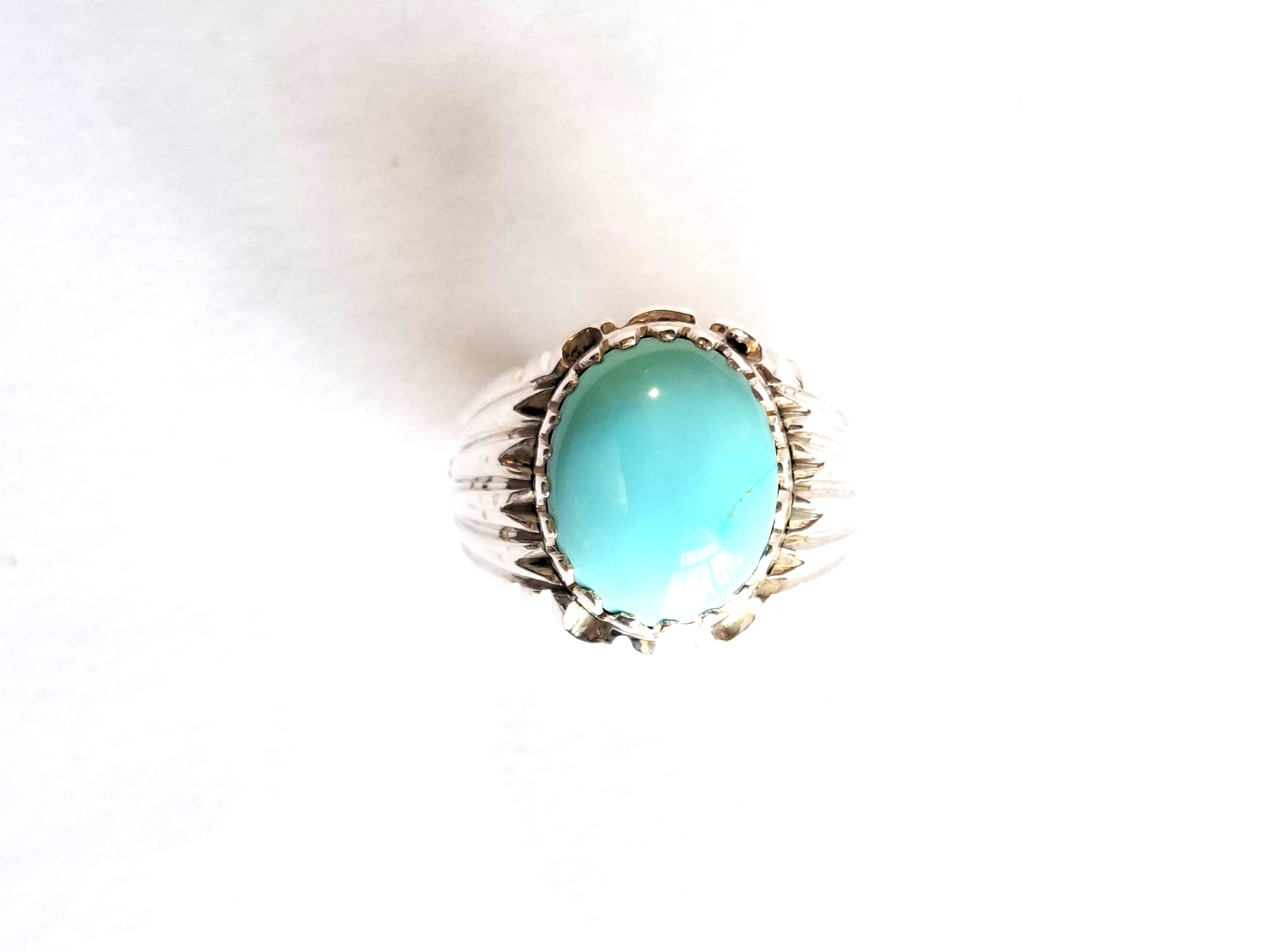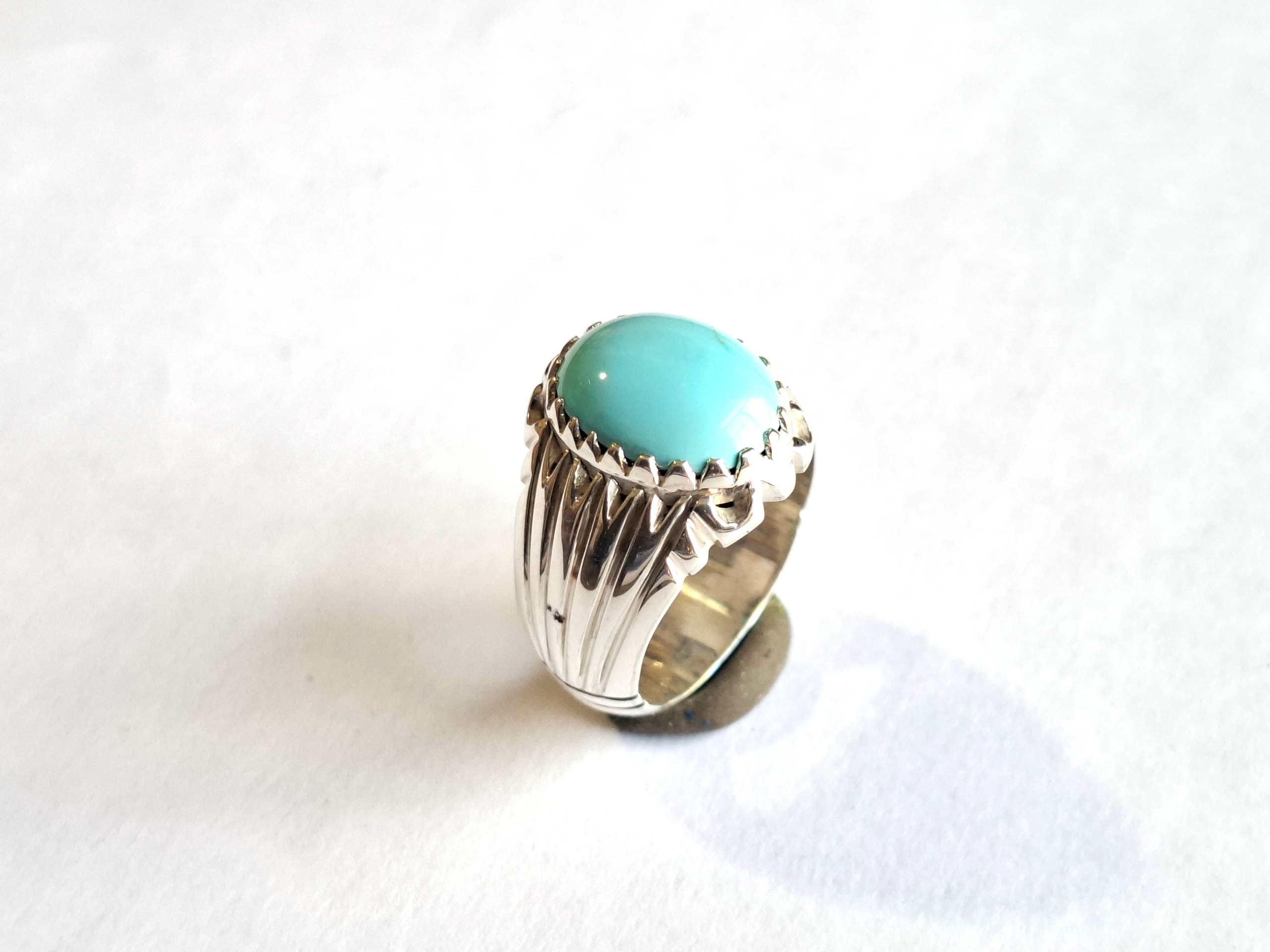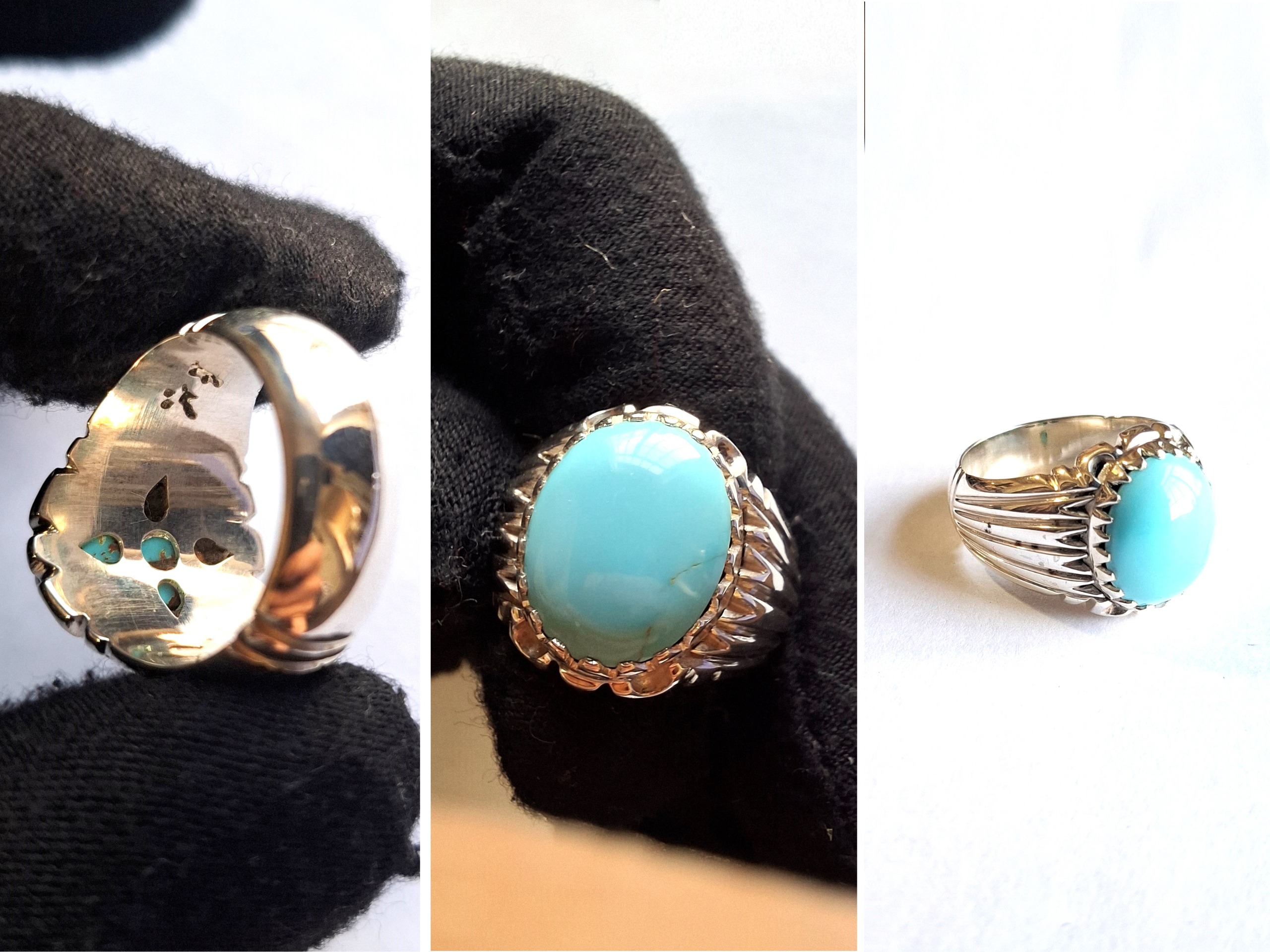 انگشتر نقره دستساز لوکس و کلکسیونی فیروزه عجمی نیشابور اصل