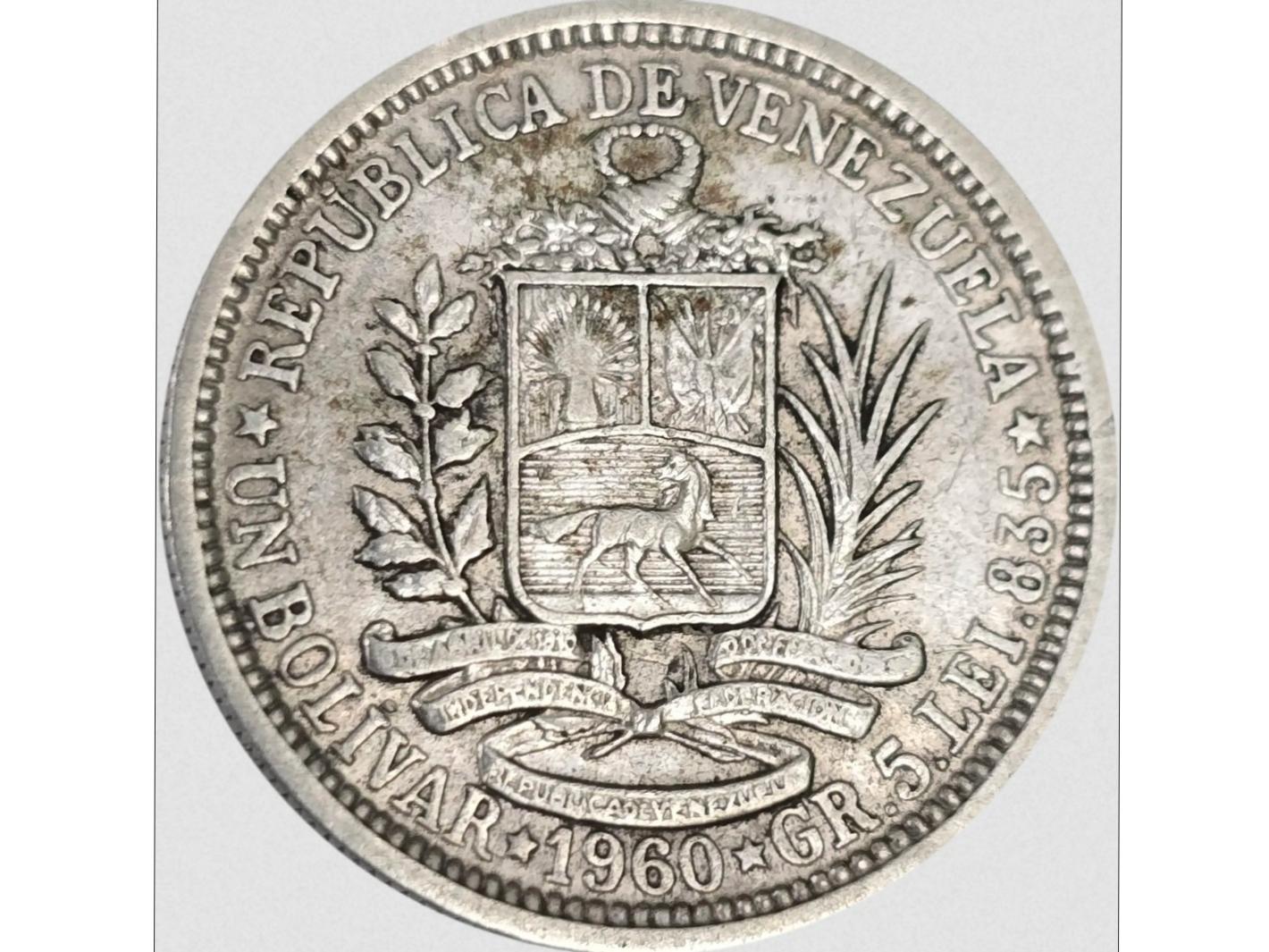 سکه نقره 5 گرمی 1 بولیوار ونزوئلا