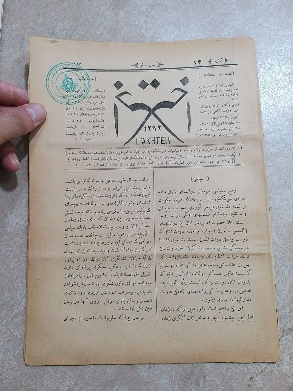 روزنامه قاجاری بسیار کمیاب و ارزشمند دوره ناصرالدین شاه اختر