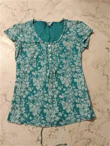 تیشرت نخی سبز آبی سفید گلدار گل گلی شومیز بلوز پیراهن آستین کوتاه زنانه دخترانه خارجی سایز 36 38 پشت بنددار