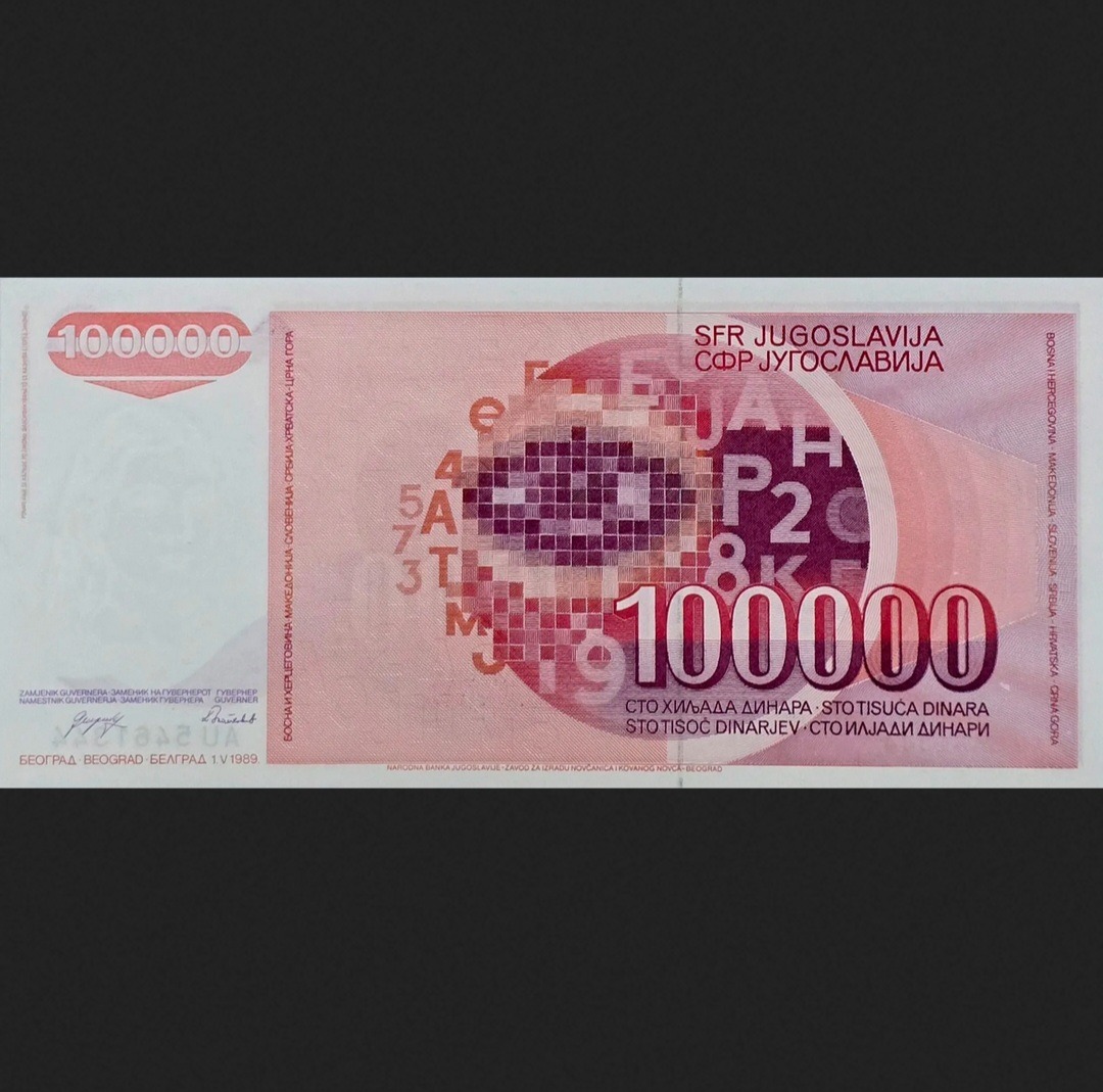 اسکناس یوگسلاوی صد هزار دینار یوگسلاوی بزرگ