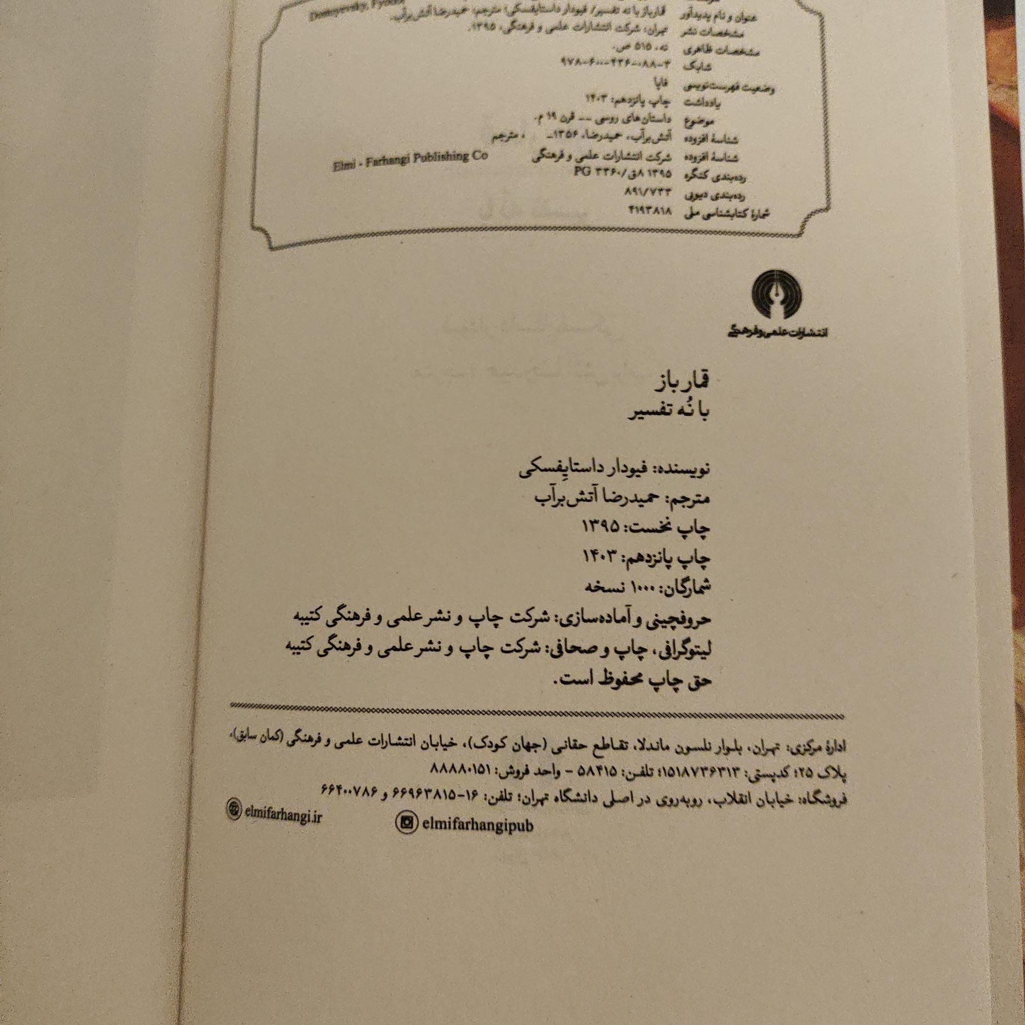 | نوع چاپ کتاب | چاپ اصل |