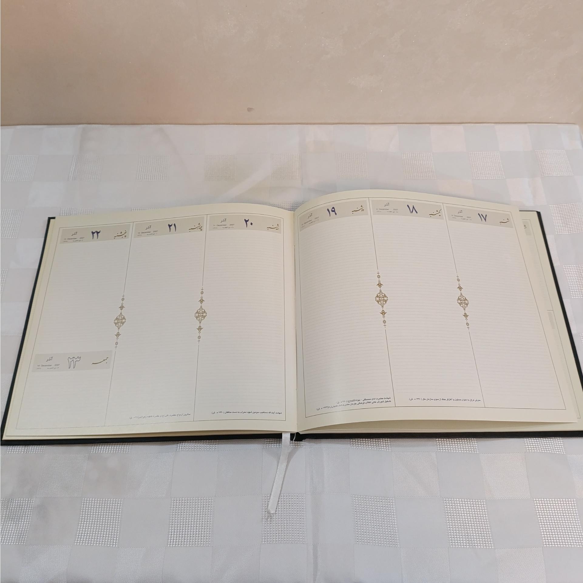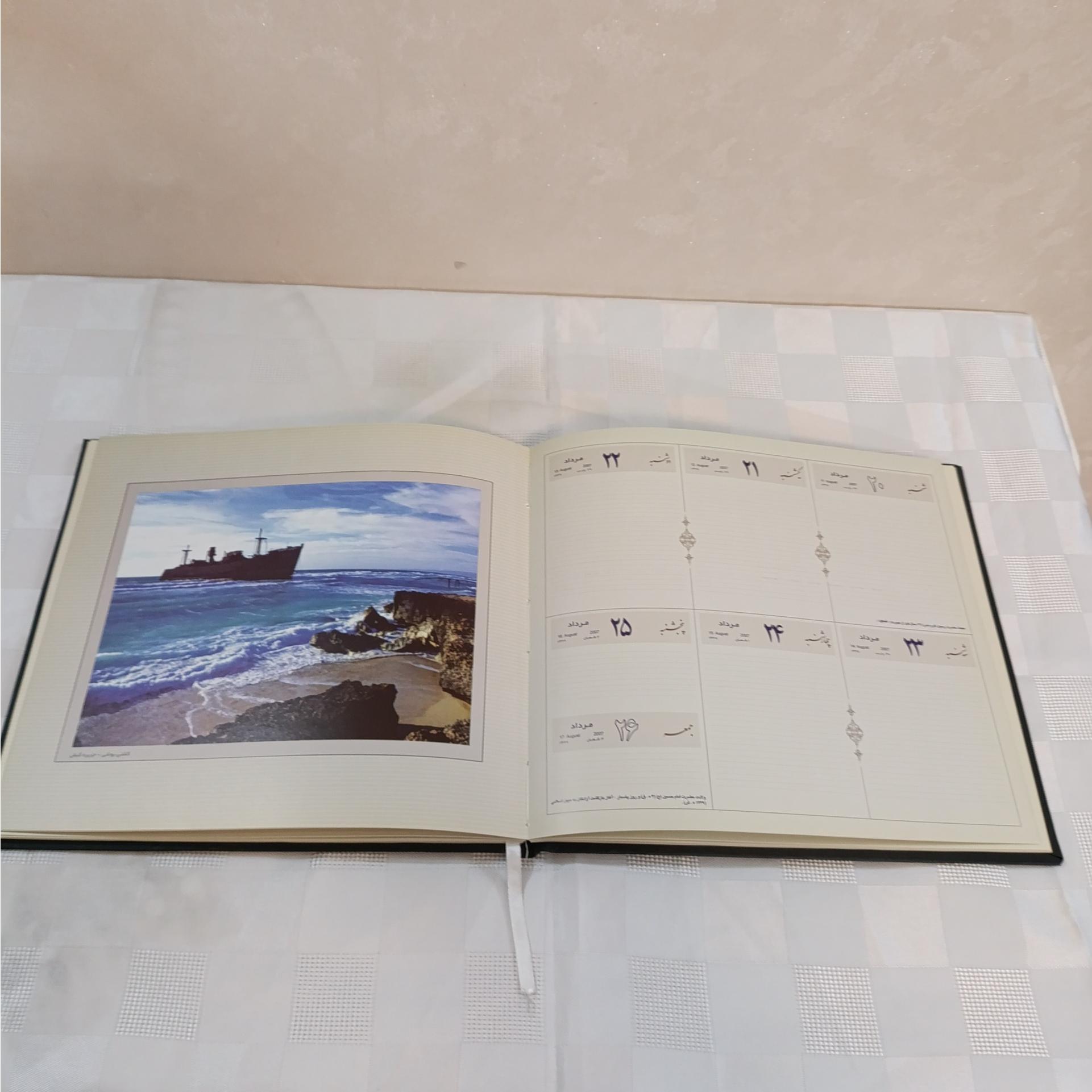 یک عدد مشکی بزرگ با تصاویر گلاسه ایران جلدش حالت ساتن براق داره.