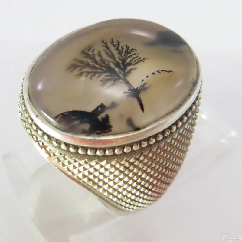نگین شجر تصل قائن خراسان بسیار صاف و شفاف و نقش سیاه و کاملا سوزنی واضح تک درخت خاکدار و ریشه دار