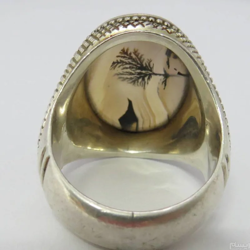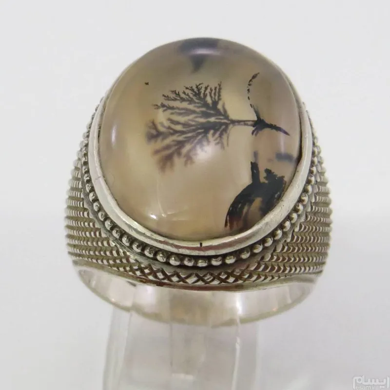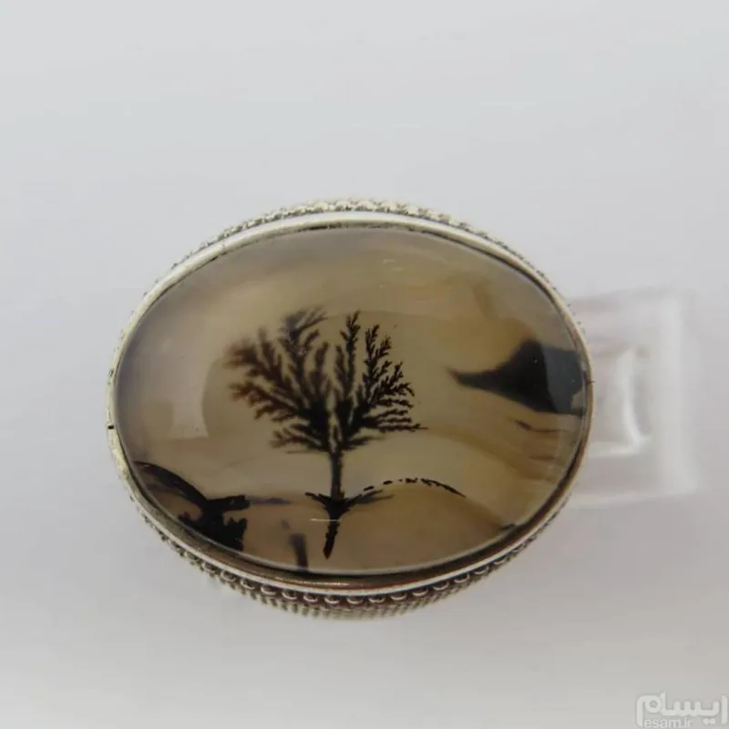 انگشتر عقیق شجری قاب تابلو کمیاب تک درخت بهشتی.