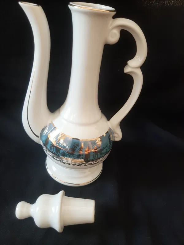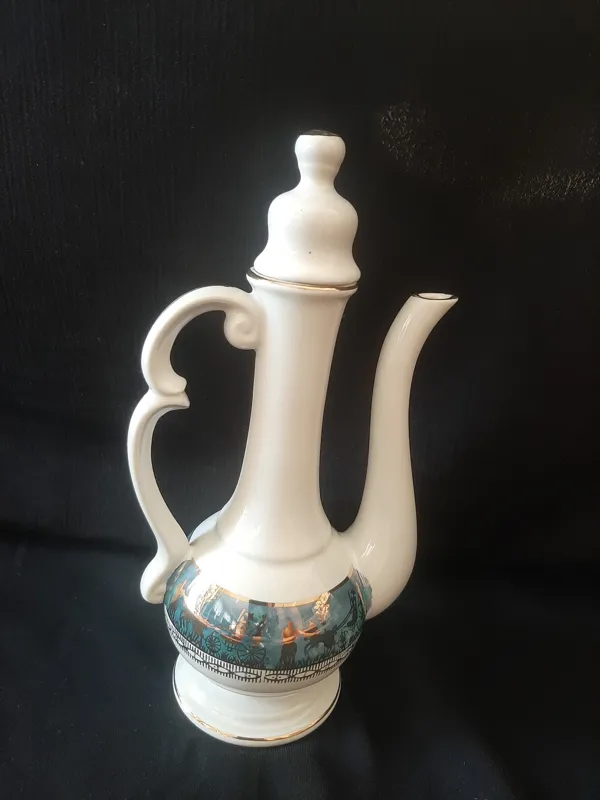 یک عدد گلاب پاش یا جا آبلیمو یا آبغوره سفارش شرکت چینی تهران در حد نو سالم نقاشی با آب طلا دسته دهانه و عکس با آب طلا نقاشی شده به علت شفافیت گرفتن عکس از تصویر سخت بود خیلی زیباتر از عکس ارتفاع 20 با در بدون رنگ رفتگی نو نو اصل بدل این کار ساخت چین است