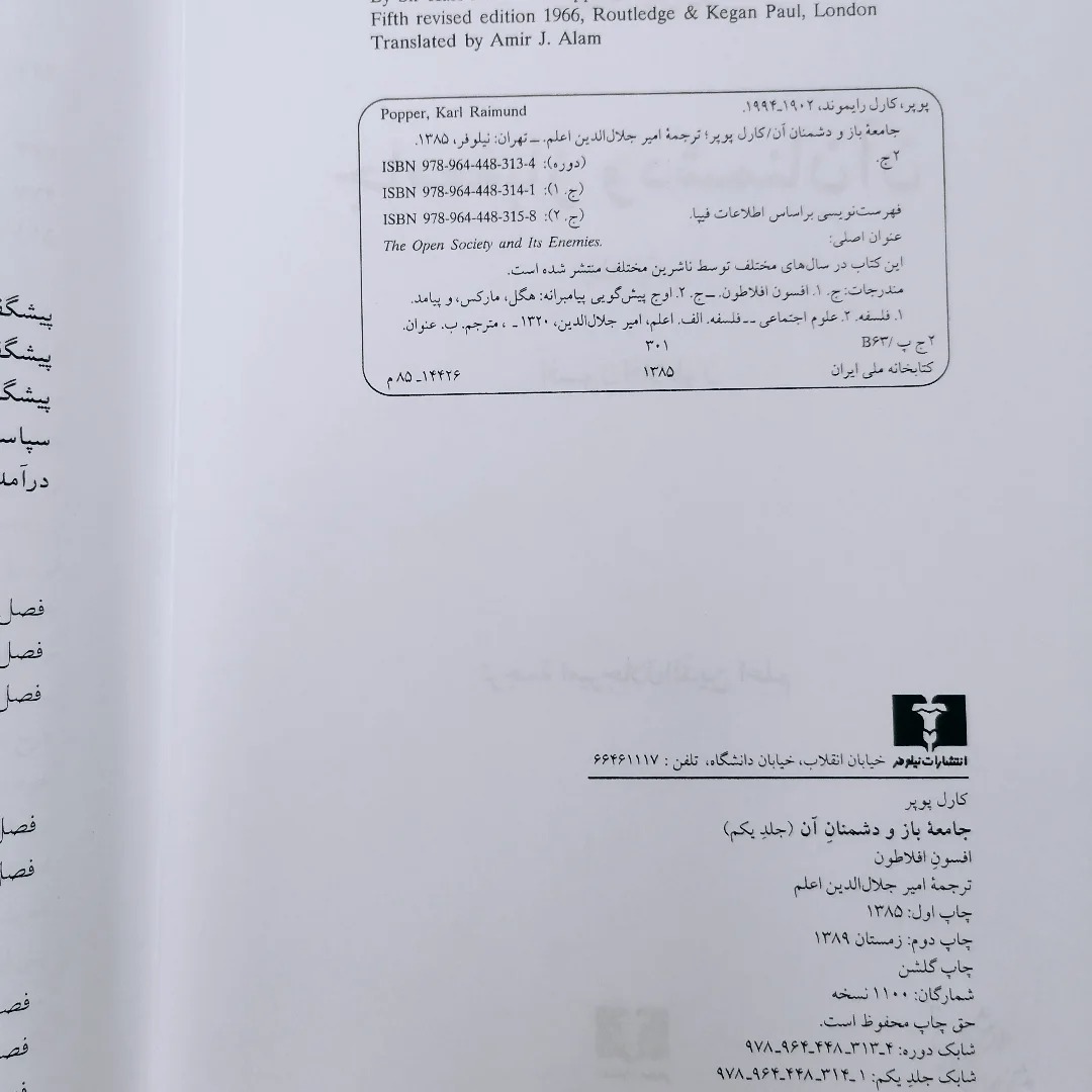 کتاب در حد نو میباشد. فقط گوشه صفحه عنوان، تاریخ خرید، درج شده است.