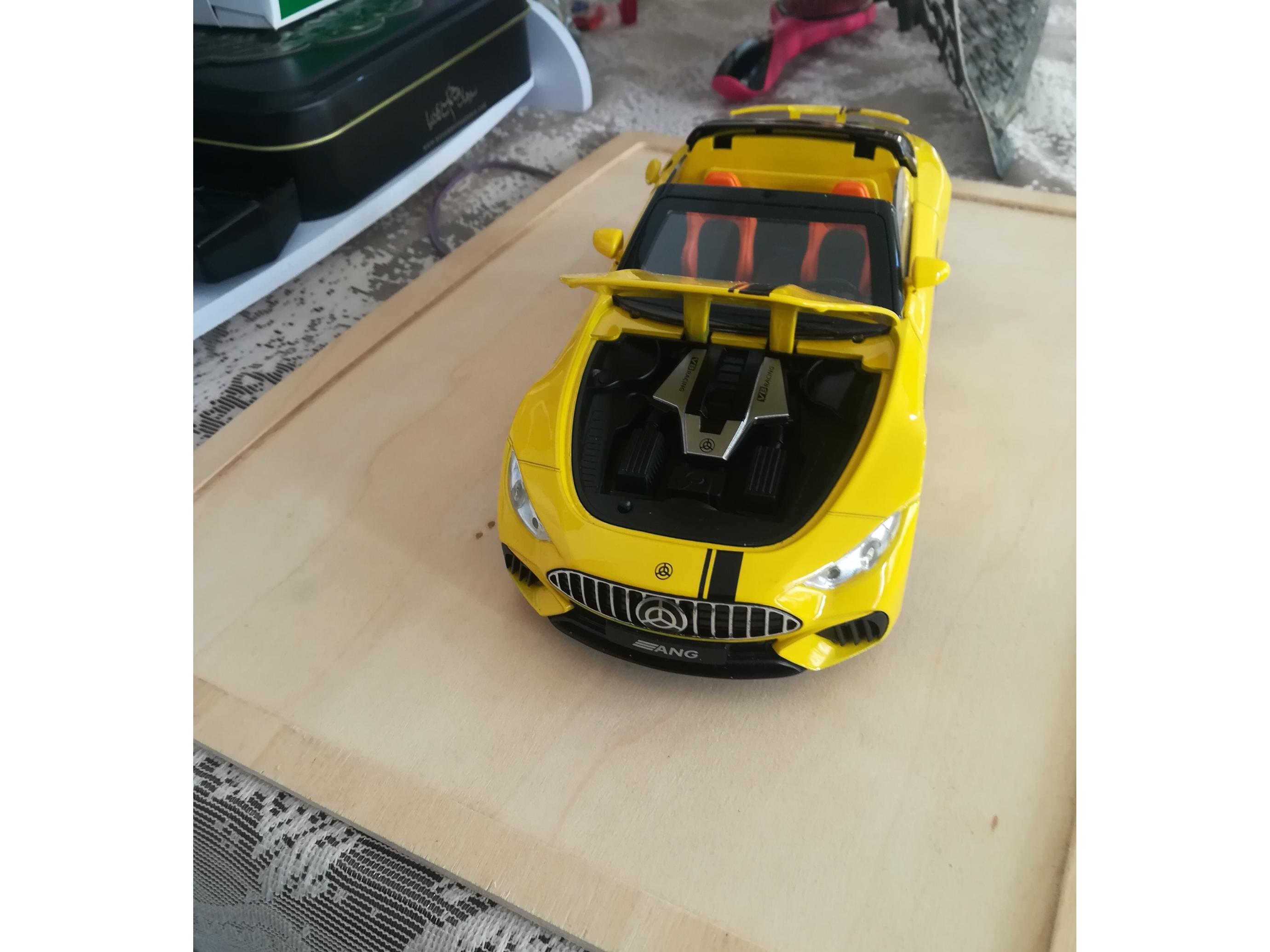 بنام خدابنام خدا درود ماکت باکیفیت بنز کروک سقف بازشو درب باک بنزین بازشو ائینه تاشو باله عقب بازشو کاپوت بازشو ودارای کلید 3حالته ودارای بوق فرمان رو کاپوتم فشار بدین استارت میخوره وچراغ جلو وعقبم روشن میشه شیک و باکیفیت فقط عنوان ماکت رو میز بوده نه بازی بچه یا چیزی کاملا مقطوع خریتون دقت کنین بدون مرجوعی یاحق