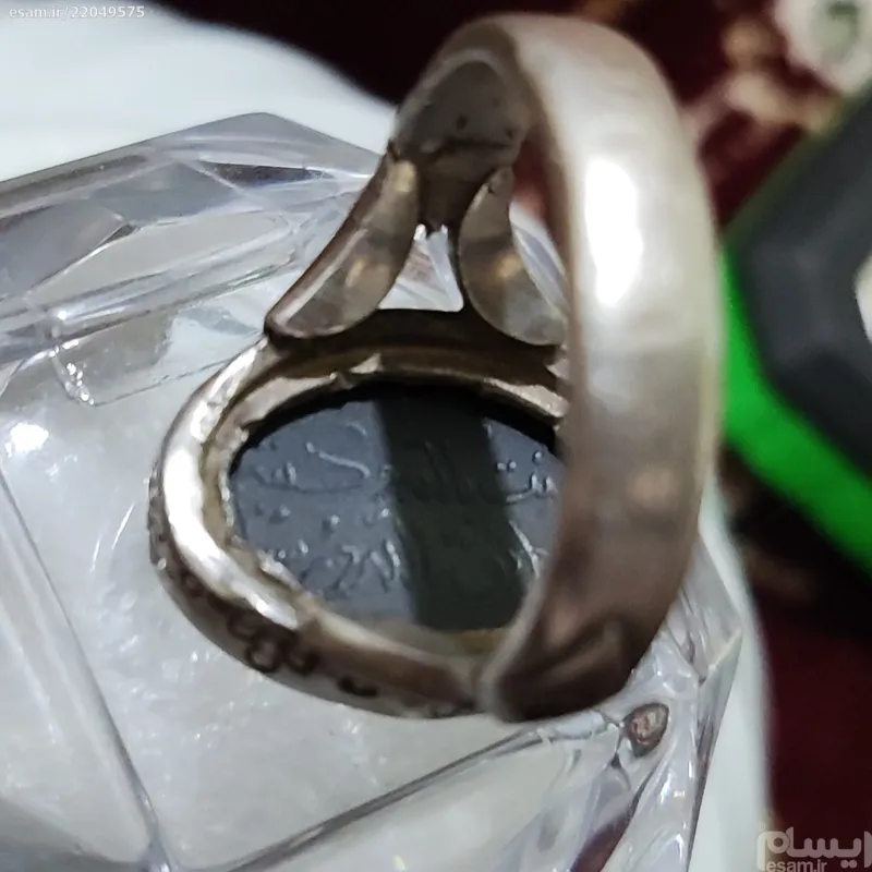 انگشتر قدیمی حدید 70ساله بسیار شکیل باحکمت بالا نگین با دست حکاکی شده بصورتیکه با مهارت دور و پشت و روی نگین حکاکی دعای هفت جلال که آمد کار و برکت و موفقیت را برای صاحبش میاره واقعا آنتیک و ناب هست