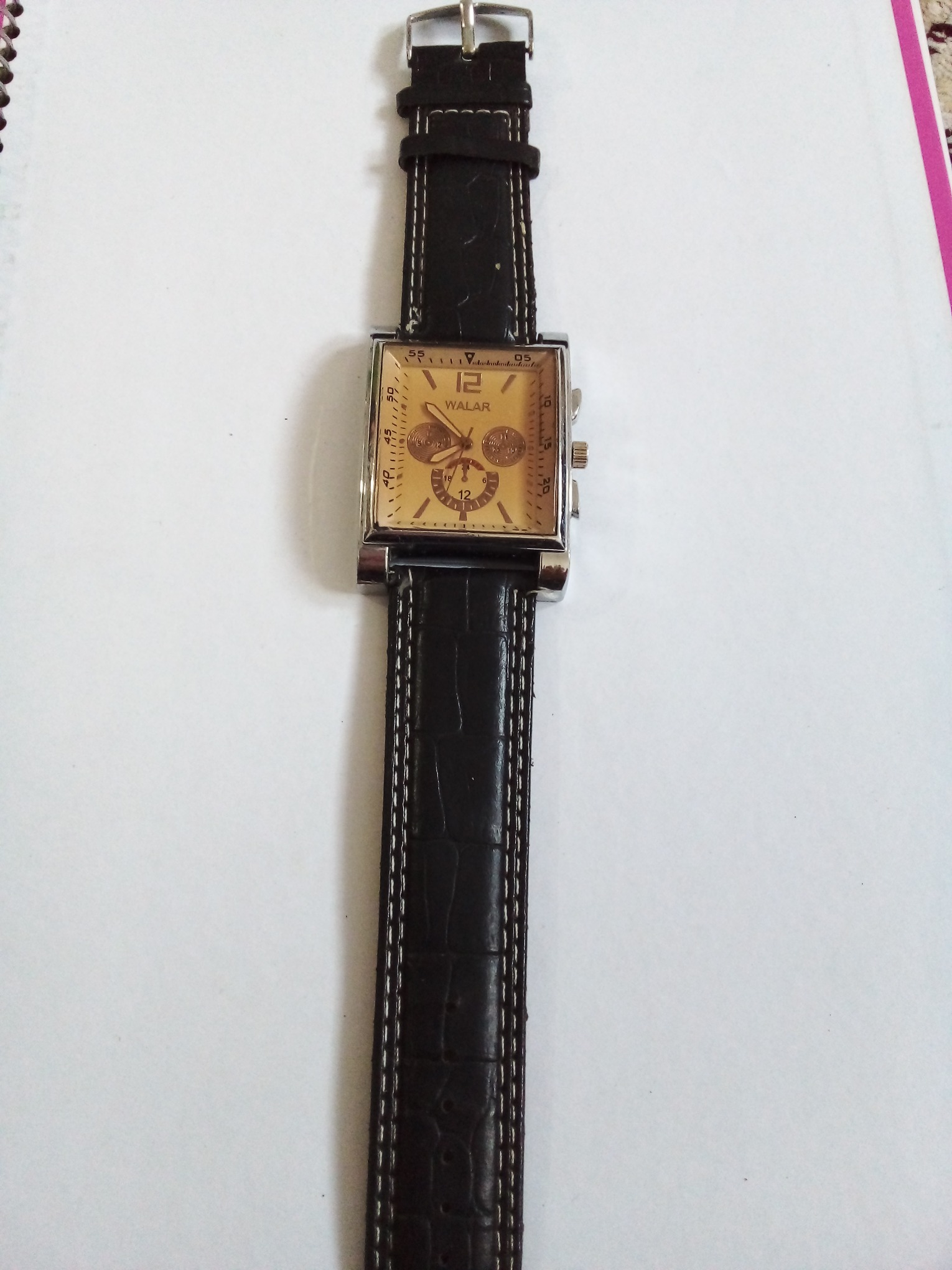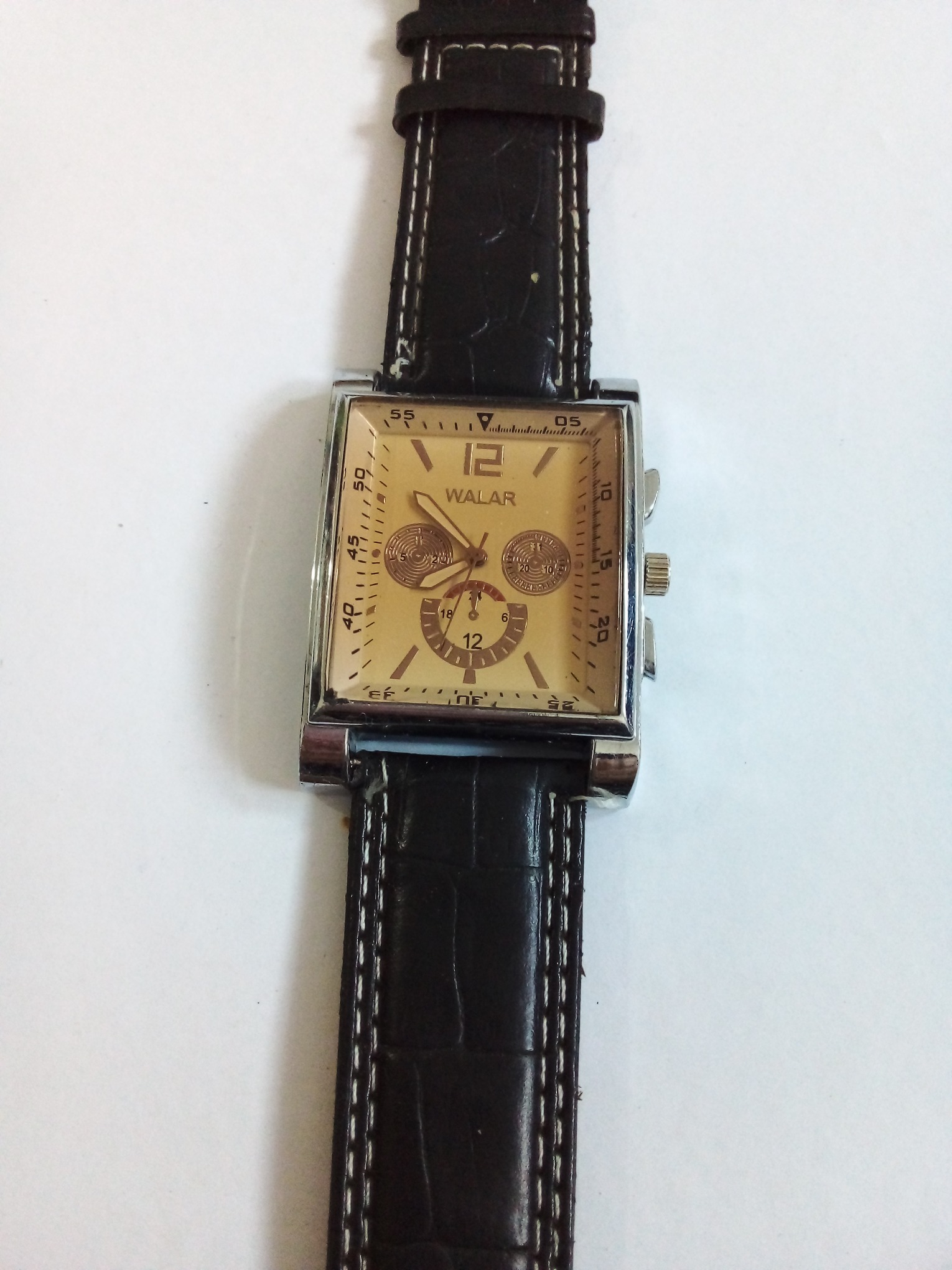 درود وروز بخیر خدمت عزیزان کاربر و سایت محترم ایسام . ساعت مچی مردانه والار دست دوم که در حال حاضر کار میکند . در تهیه عکسها از کالا سعی بر این هست که گویا وواضح باشند . عزیزان خریدار قبل از اقدام به خرید لطفا وحتمن عکسها را ببینید وتوضیحات را کامل بخوانید