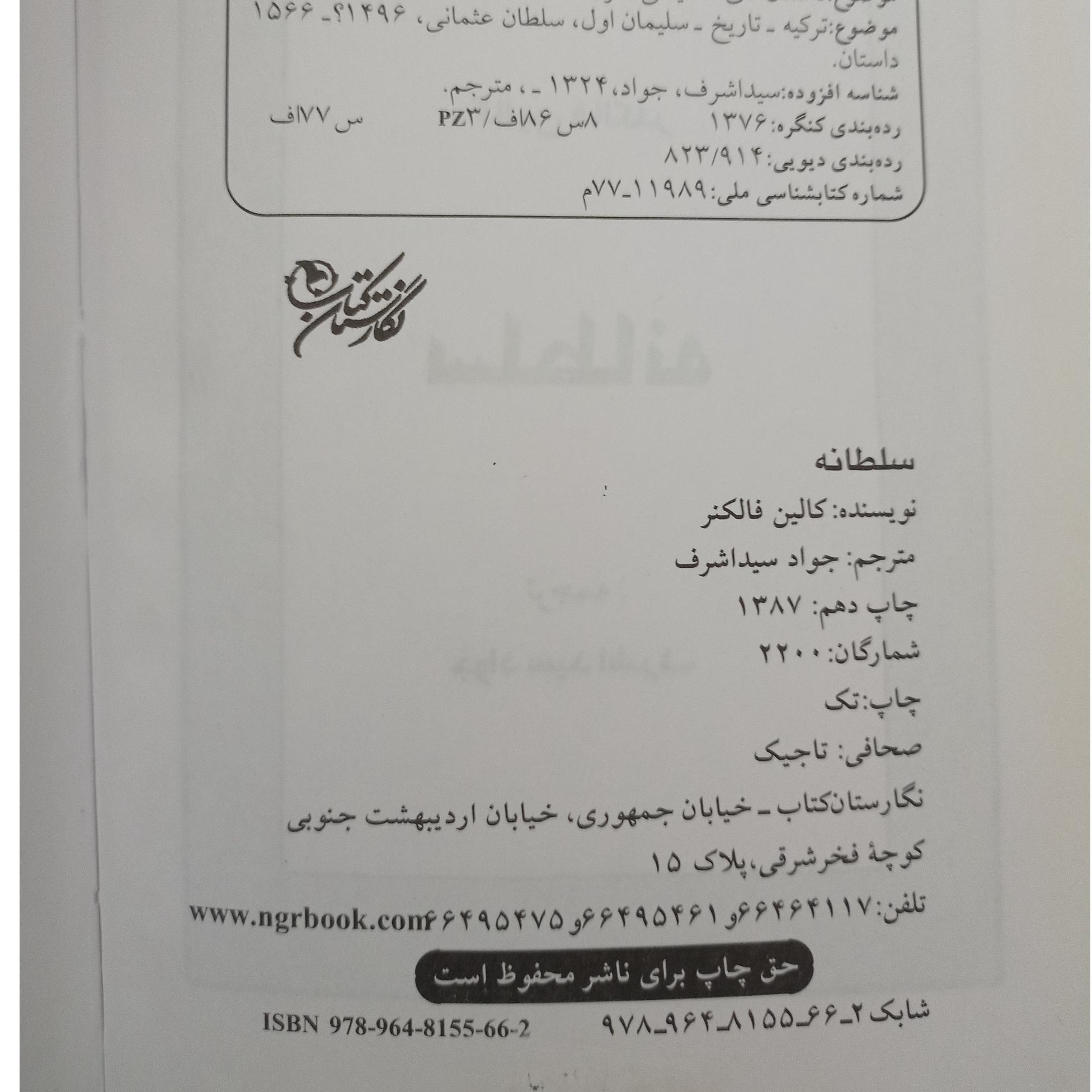 سلطانه تالیف: کالین فالکنر ترجمه: جواد سیداشرف