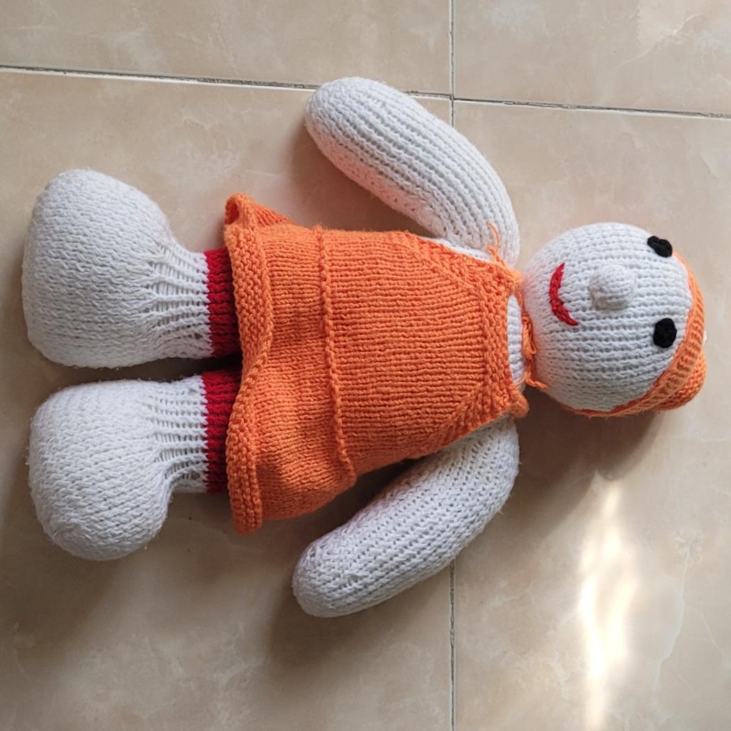 دست بافت با بهترین مرتیال ضد حساست برای کودک ابعاد حدودی 60 در 40 بسیار نرم لباس روی کودک قابلیت جدا شدن داره که حتی میتونید در بیارید تن کودک کنید حالت تاپ دامن داره