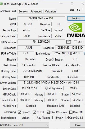 گرافیک اصلی ASUS GT210 1G DDR3