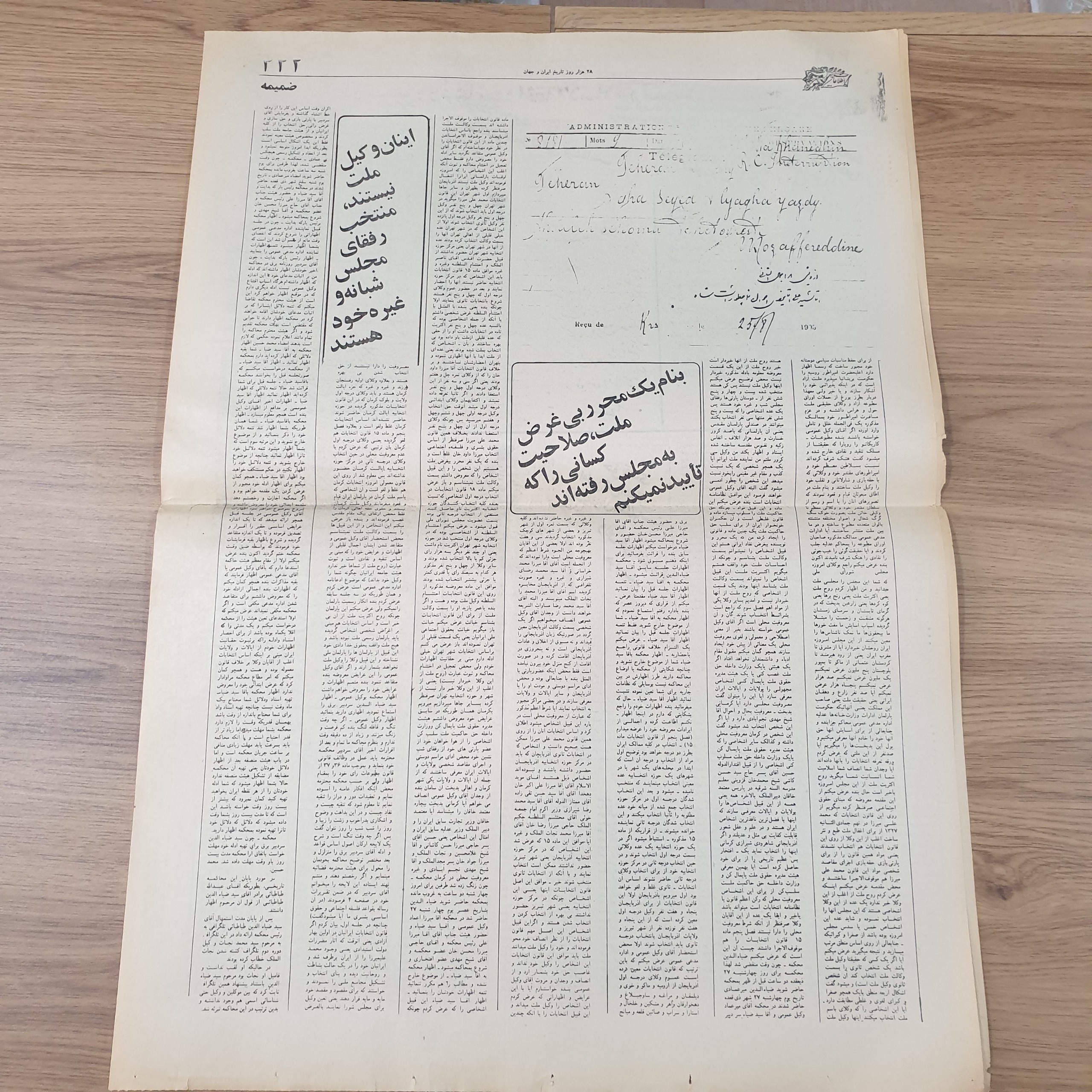 روزنامه قدیمی دوره رضاشاه اطلاعات دوبرگی
