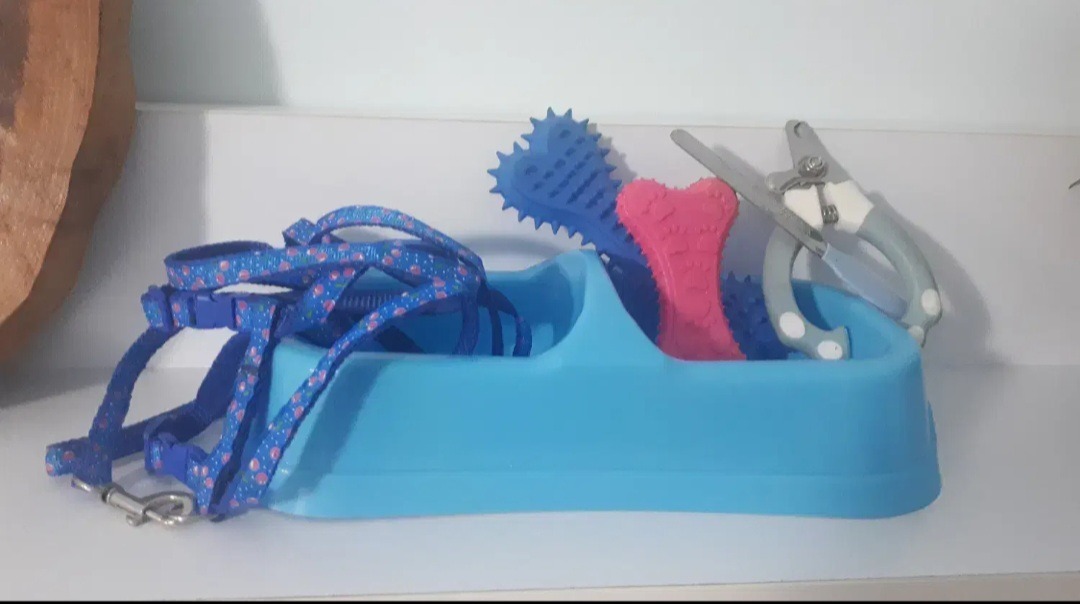 قلاده، ناخن گیر و سوهان، ظرف آب و غذای پلاستیکی و دندونگیر جمعا 600