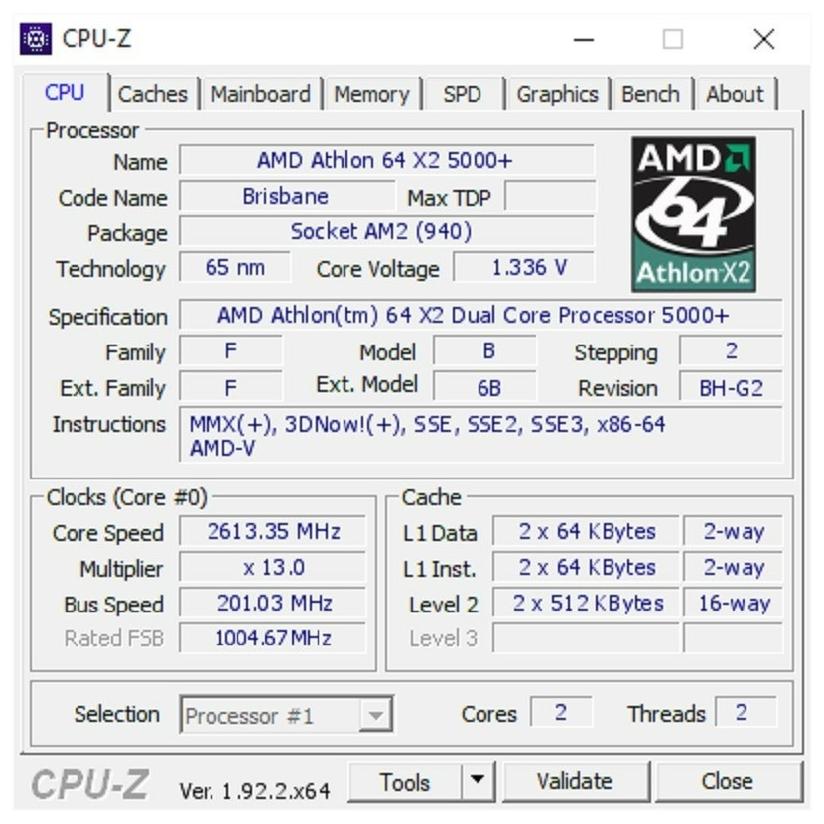 مشخصات فنی پردازنده AMD Athlon 64 X2 5000