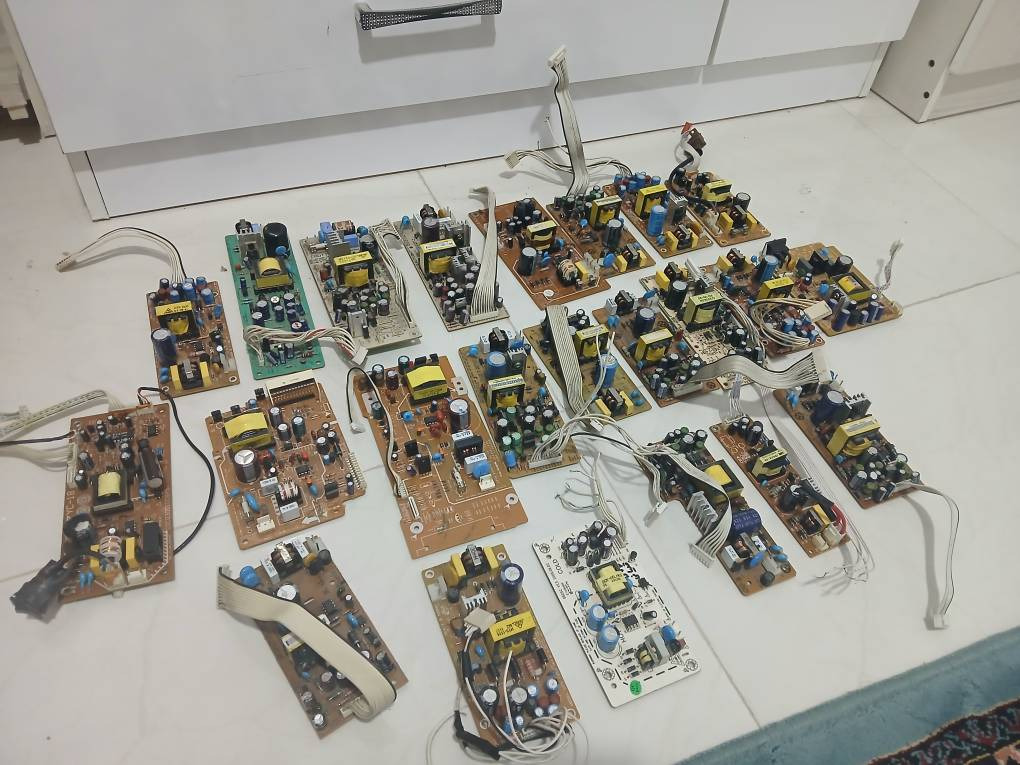 23 عدد برد تغذیه سوییچینگ که هر کدام خروجی ولتاژ متنوعی دارن چندتاشون از 3 ولت الی 12 ولت و یه سری هم از 3 ولت الی 22 ولت هستند همگی سالم و ارجینال