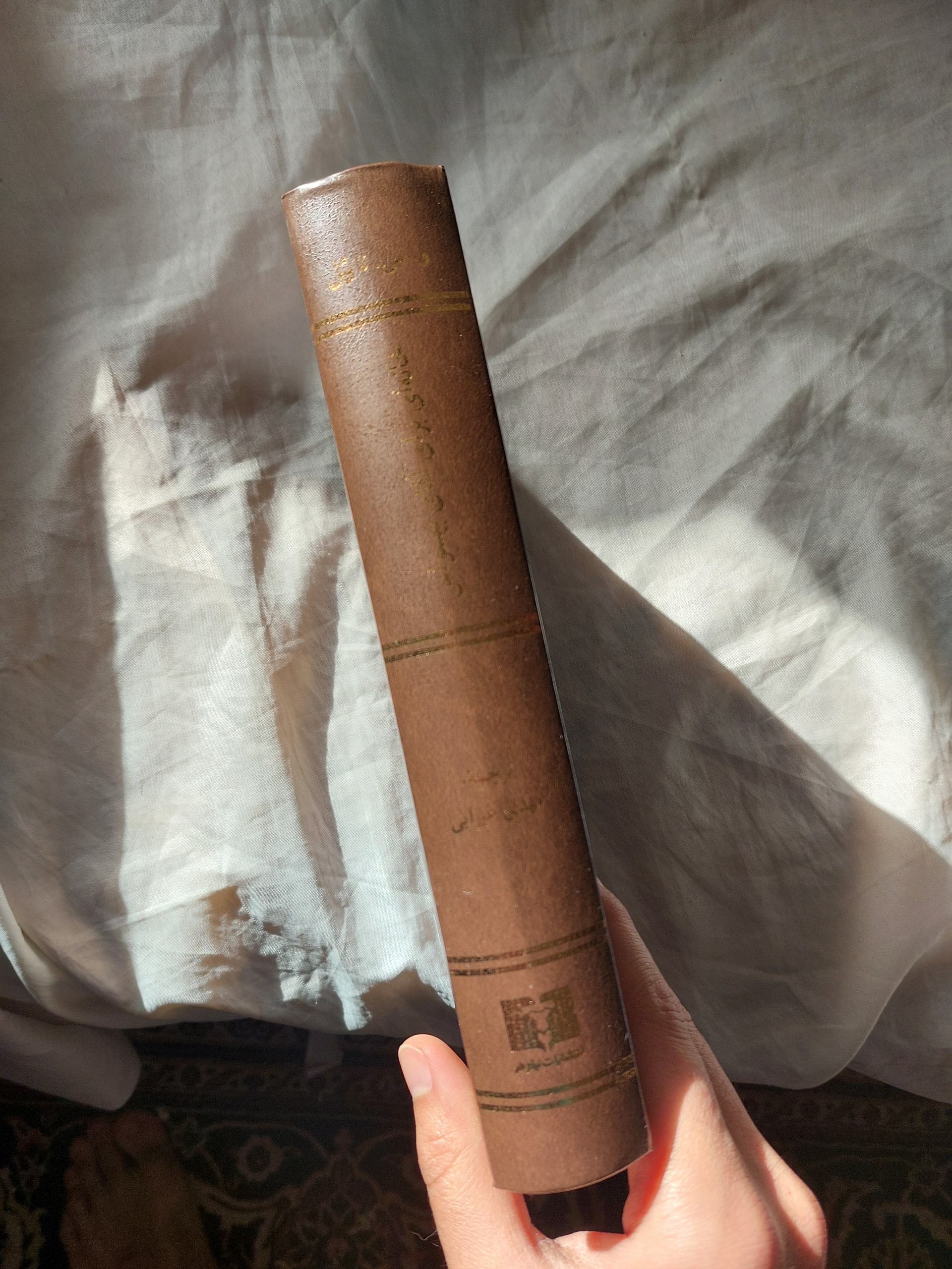 طلاکوب با جلد خاص قهوهای رنگ.