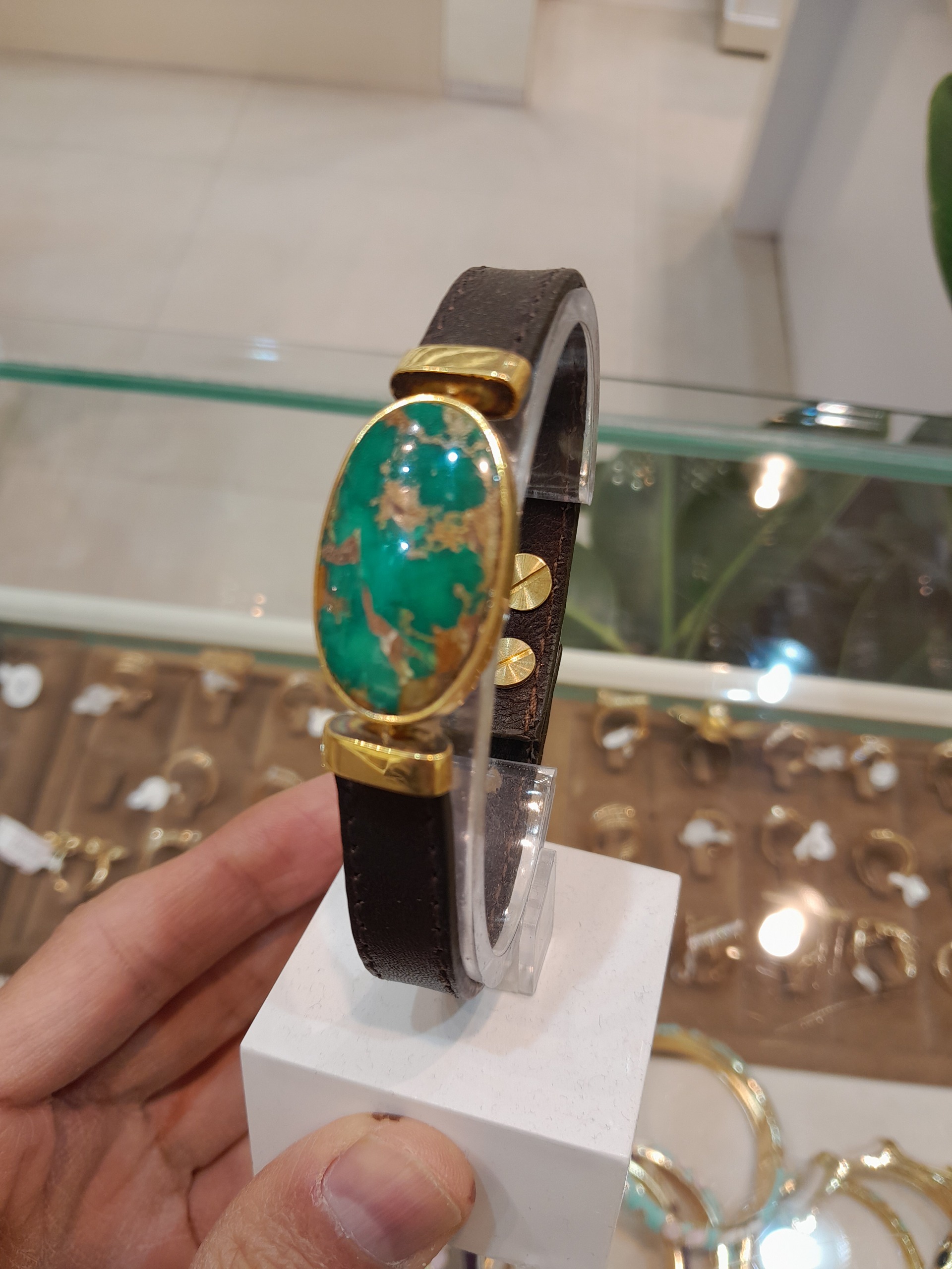 دستبند چرم،فیروزه نیشابور اصل با فاکتور ضمانت،دوره فیروزه رو،با نقره قاب گرفتن،کار دست هست و با قیمت قبل ،قیمت گذاری شده