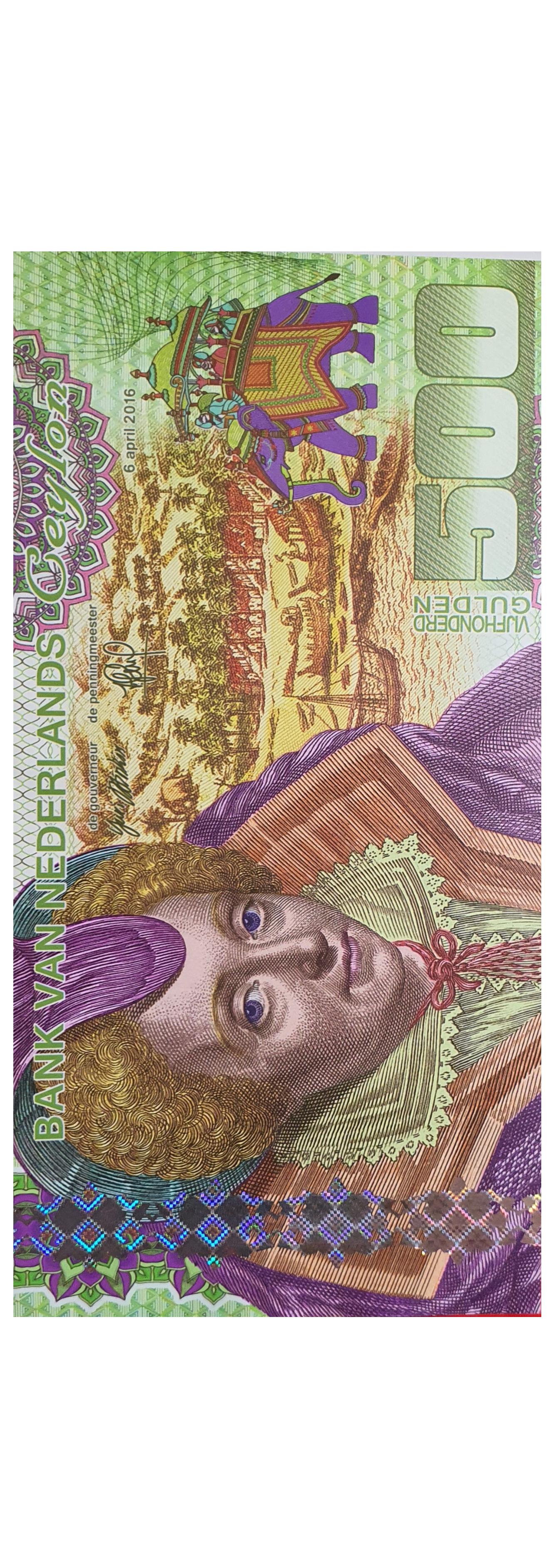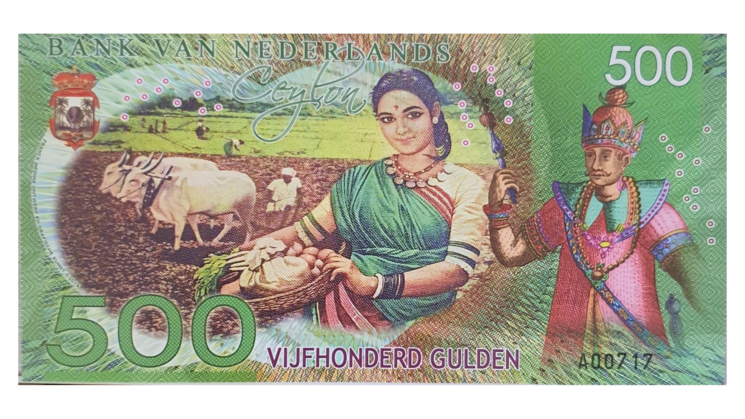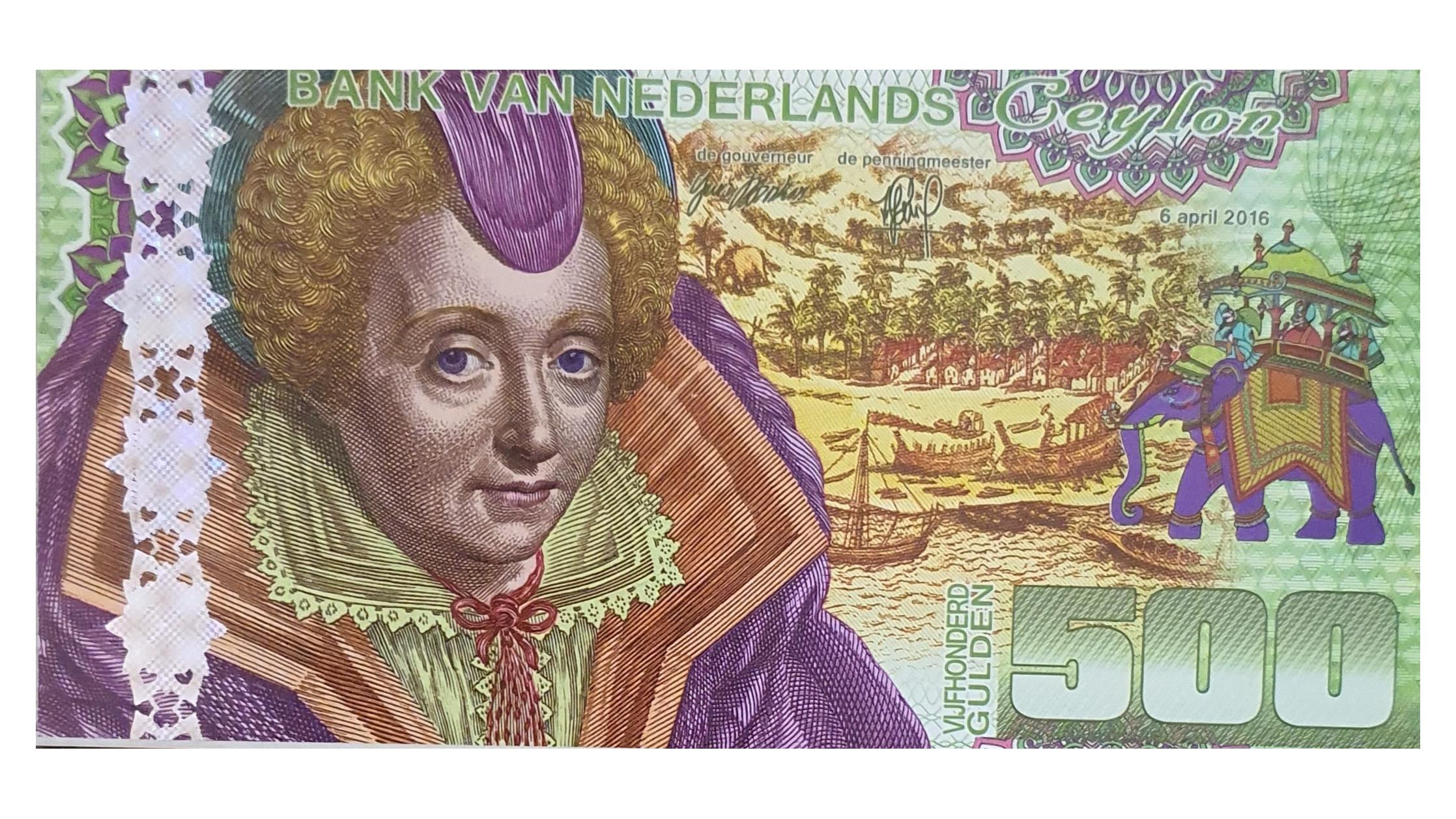 کیفیت و سریال اسکناس پلیمر در ابعاد 83 × 165 میلی متر با الهام از دروان حکومت هلند بر جزیره سیلان یا سریلانکای فعلی در سال 2016 چاپ شده است و اثر پول شمار و موج سطحی در حاشیه بالای اسکناس وجود دارد .