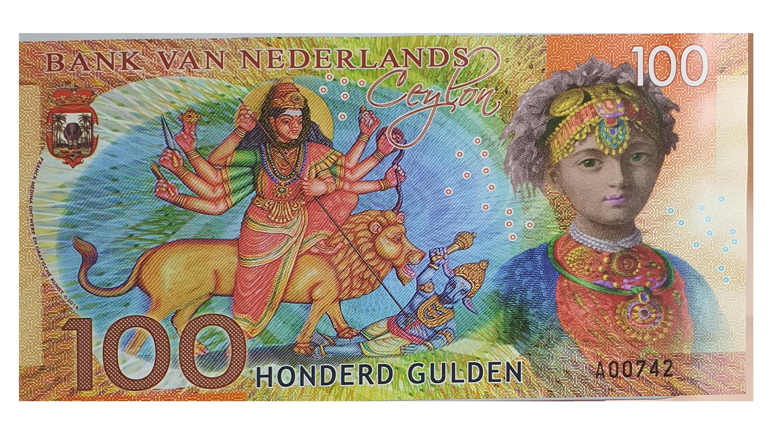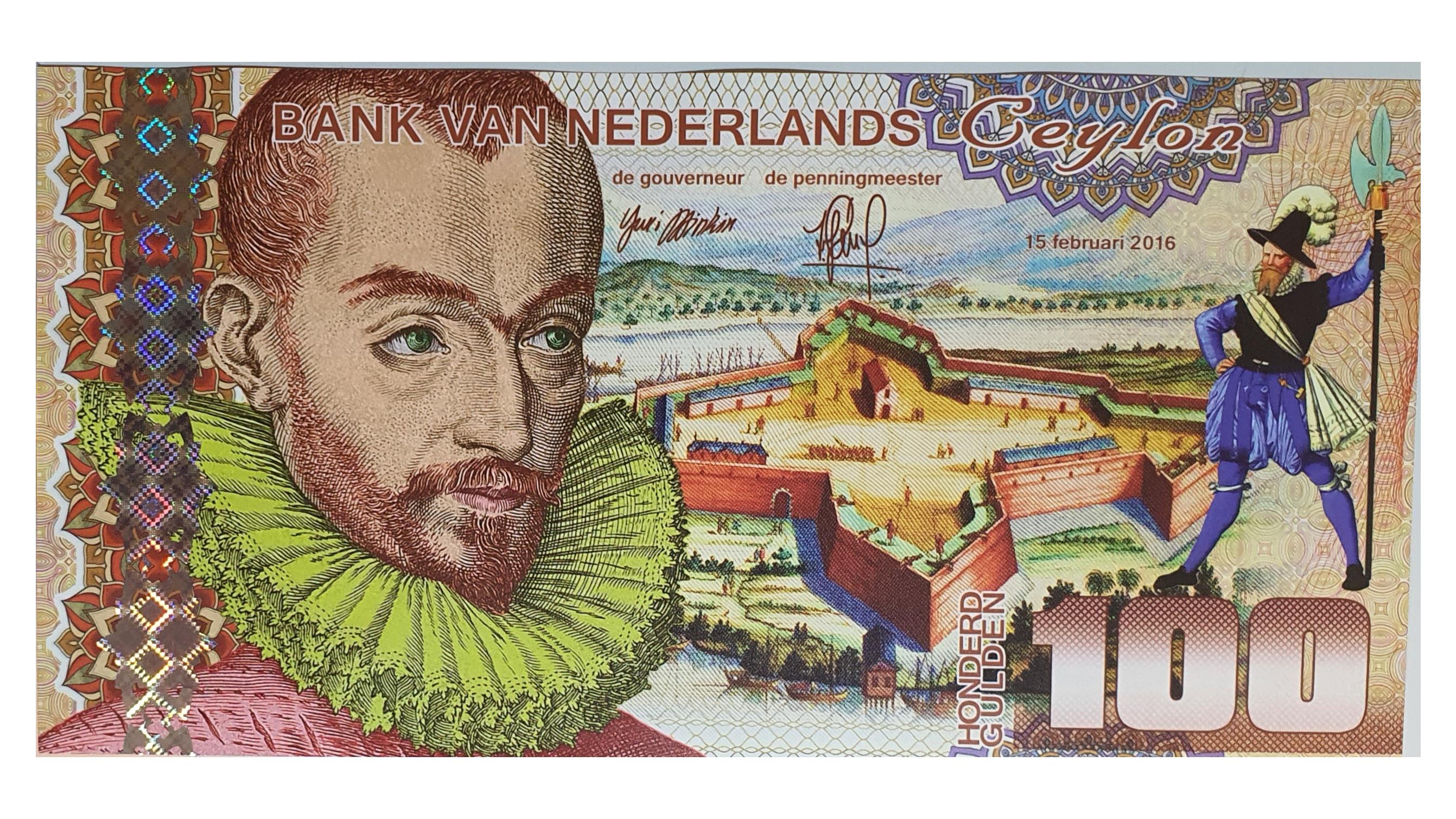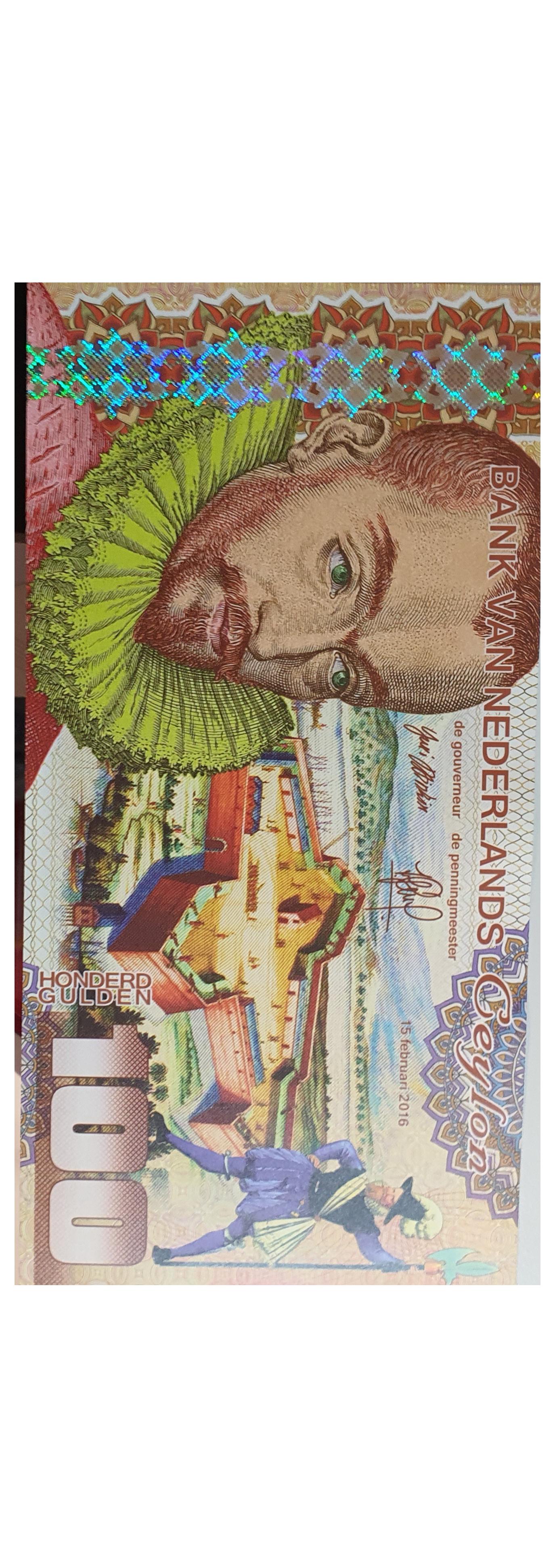 کیفیت و سریال اسکناس پلیمر در ابعاد 83 × 165 میلی متر با الهام از دروان حکومت هلند بر جزیره سیلان یا سریلانکای فعلی مزین به پرتره مرد اروپایی ، قلعه استعماری هلندی ، سرباز هلندی ، الهه هندو سوار بر شیر ، چهره زن سنتی سیلان و عناصر امنیتی هولوگرام و چاپ رنگی زیبا و جذاب در سال 2016 چاپ شده است و هدیه ای جذاب  و تاریخی برای کلکسیونرها و مجموعه داران به حساب می آید .  هر قطعه این اسکناس در بازار نوستالژی کلکسیون و سایت های آنلاین معتبر خارجی 28 یورو ارزش دارد .