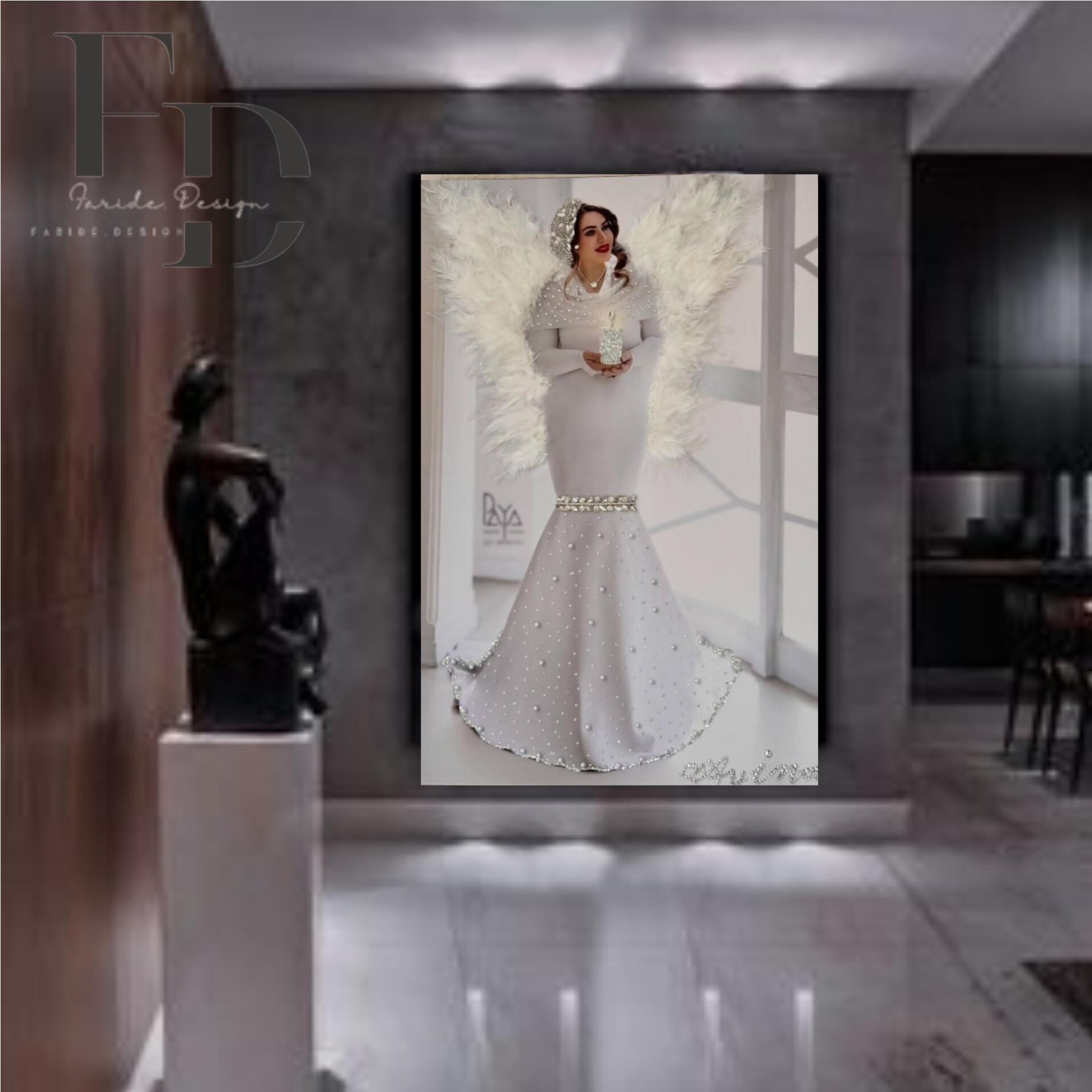 عکسهای شخصی ، به صورت تخصصی برای مشتری به صورت ماملا رایگان طراحی میشه و بعد برجسته سازی میشه و مرحله ب مرحله با مشتری چک میشه،این تابلو با پرهای خارجی وارداتی برجسته شده و همچنین با سنگ های کریستالی اصل برجسته شده.