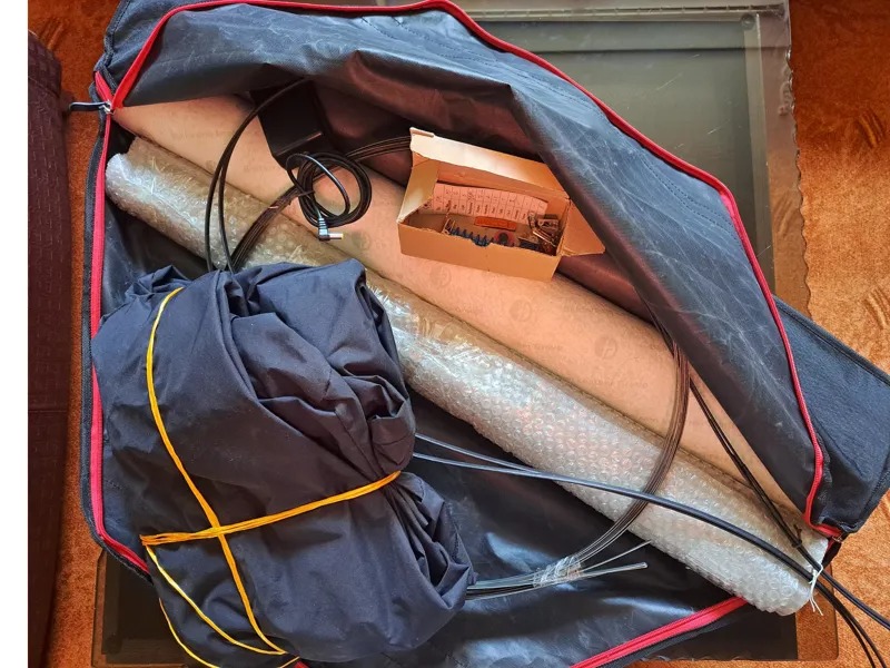 تمامی لوازم از جمله لامپ و کیف و بست و مگنت و اداپتور و سیم کشی مرتب داخل جعبه وجود دارد.