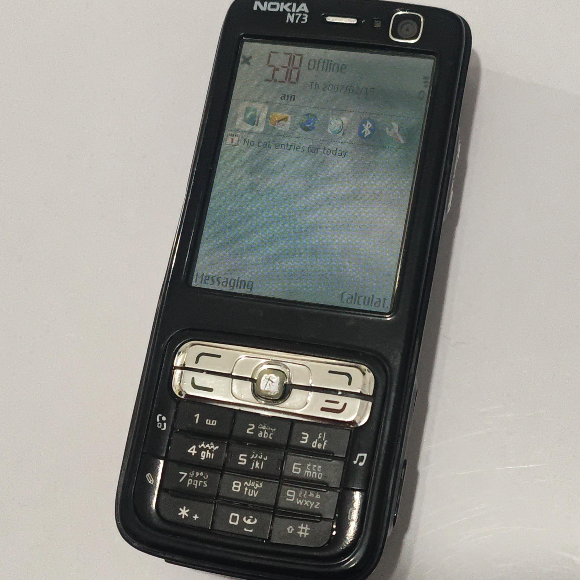 نوکیا n73 بسیار تمیز با دوربین بسیار با کیفیت . و صدای استریو شفاف تمیز و مرتب و ابرو دار . از نظر فنی و ظاهری بسیار تمیزه بدون مشکل و ایراد . رجیستر هم هست و با تمام اپراتور ها انتن داره