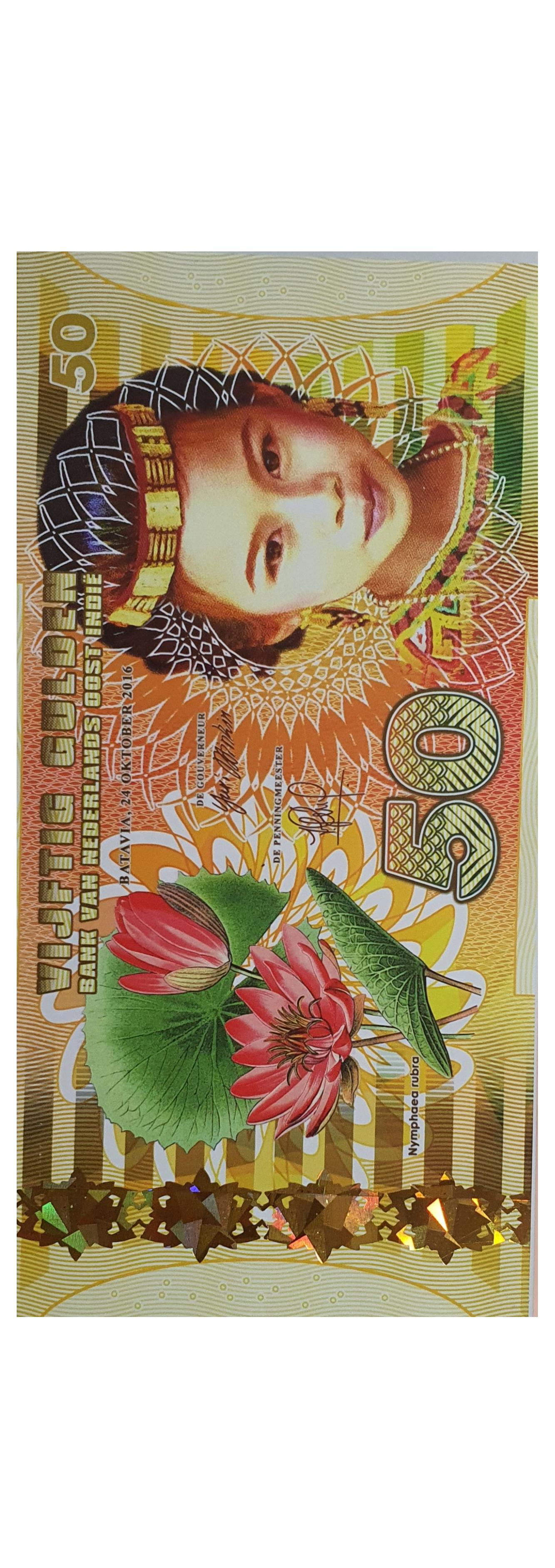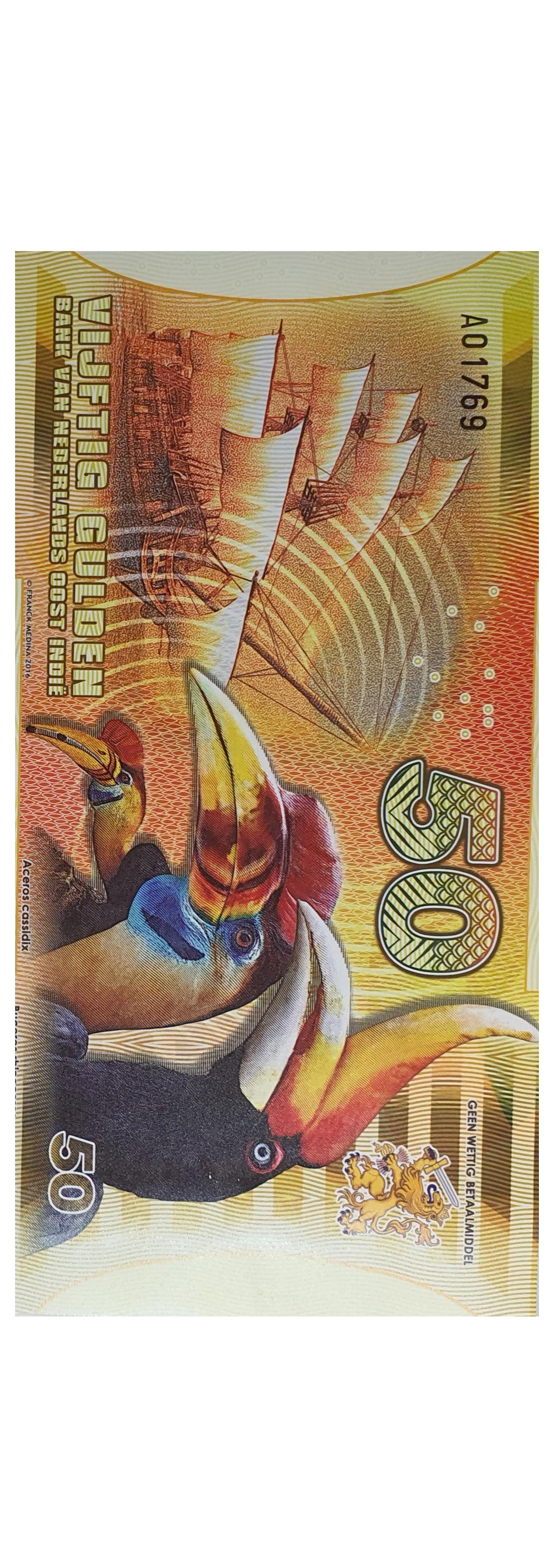 کیفیت اسکناس پلیمر در ابعاد 83 × 165 میلی متر با الهام از دروان حکومت هلند بر هند شرقی (اندونزی) و جزیره سیلان (سریلانکا) در سال 2016 چاپ شده است و هدیه ای جذاب  و تاریخی برای کلکسیونرها و مجموعه داران به حساب می آید و هر قطعه این اسکناس در بازار نوستالژی و سایت های آنلاین معتبر خارجی بستگی به کیفیت تا 35 یورو ارزش دارد .
