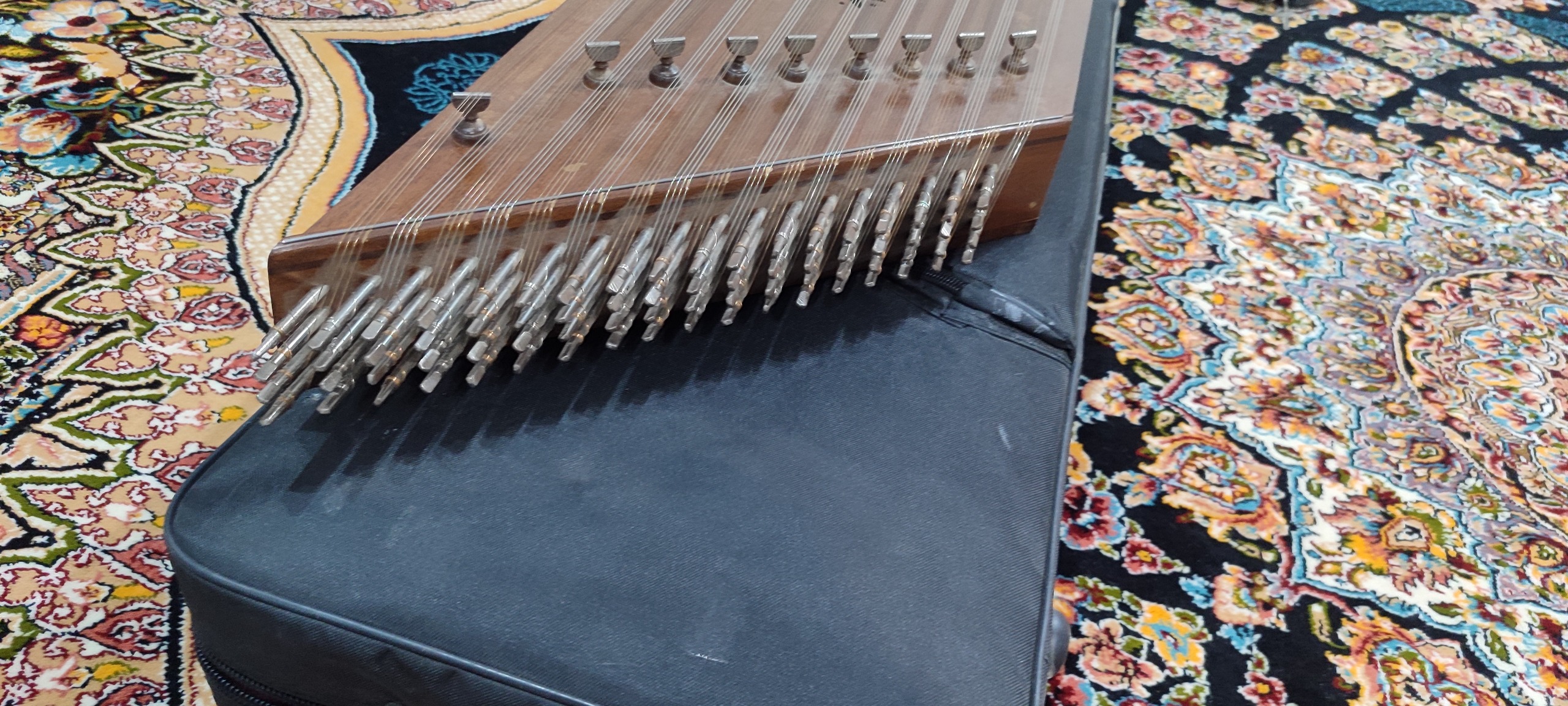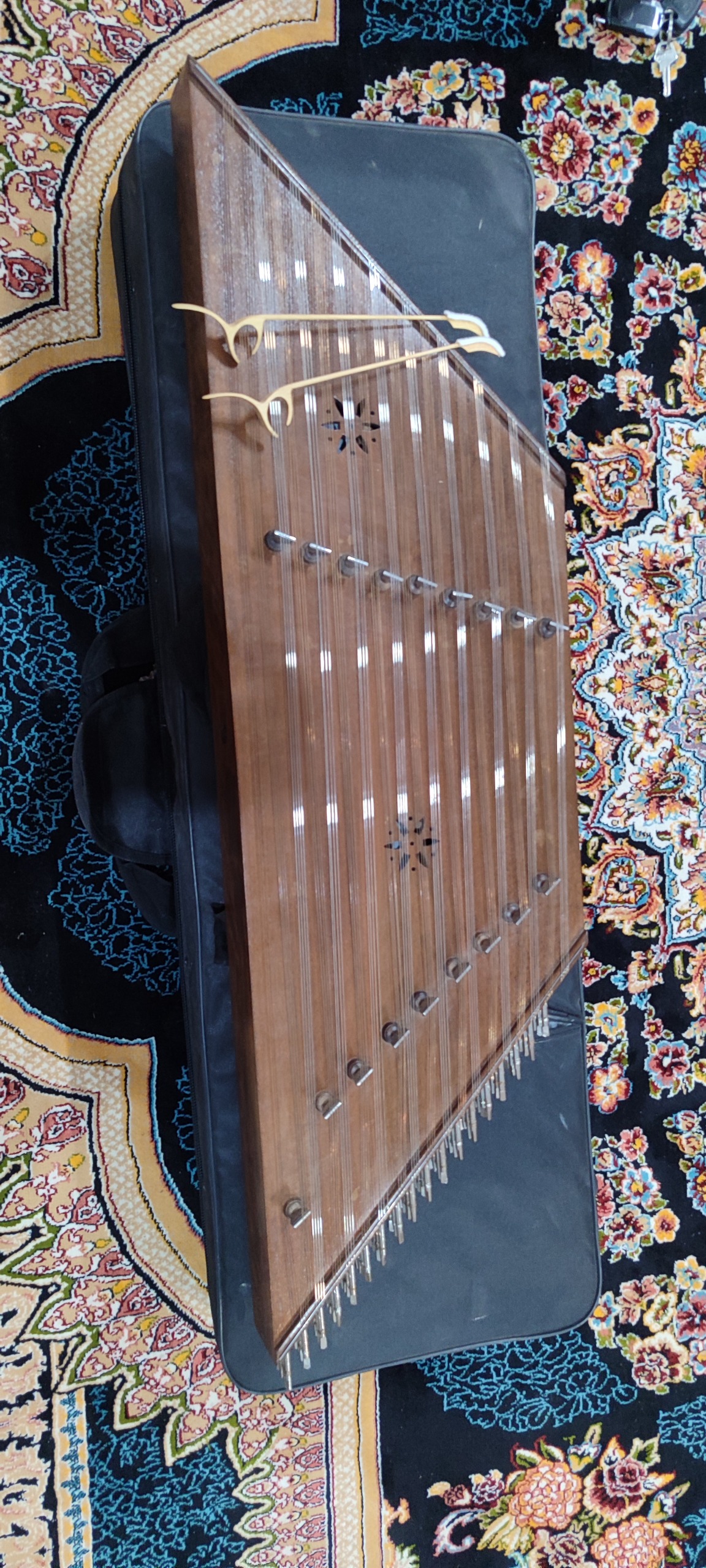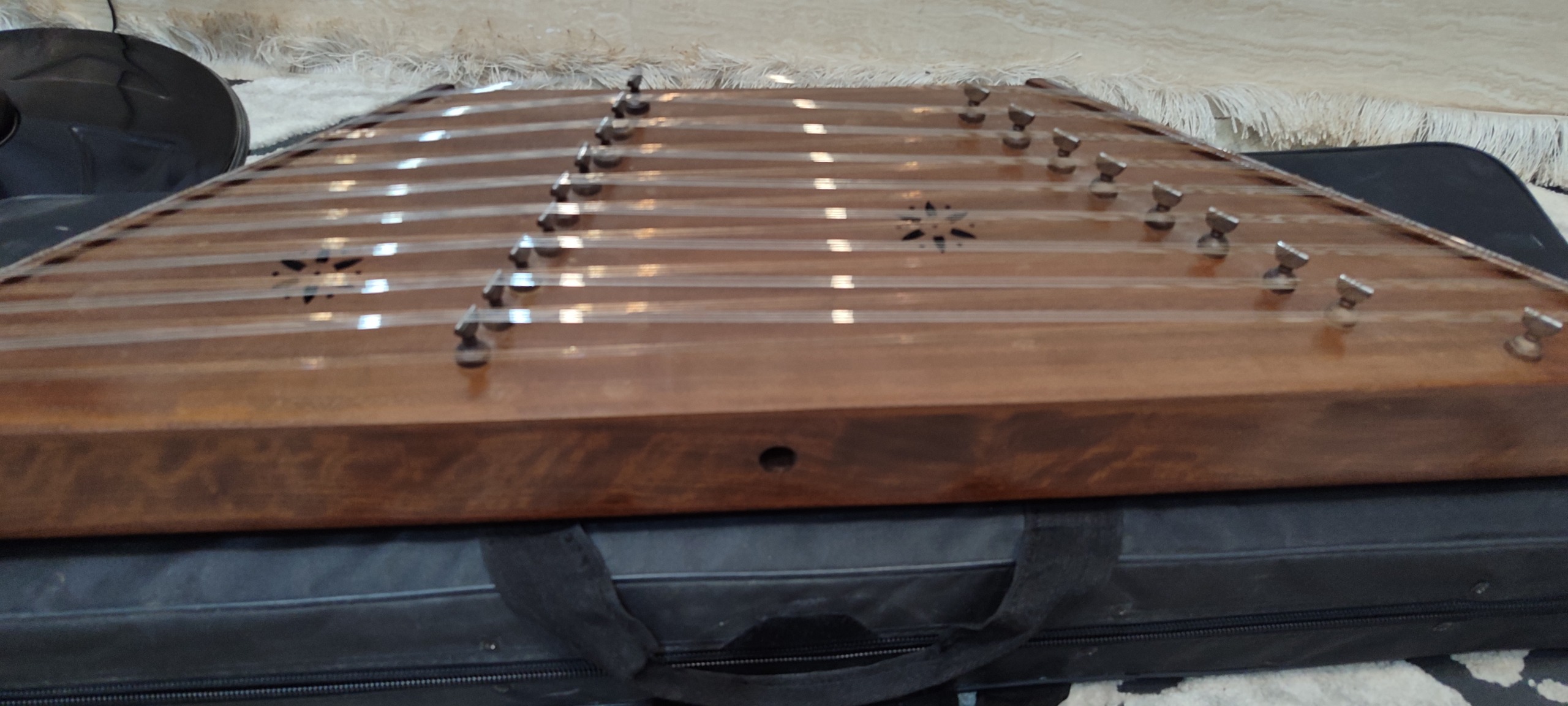 سنتور 2مهر  دل انگیز با ماندگاری کوک بالا  چوب گردو به همراه مضراب و کتاب آموزشی  و جعبه محافظ سنتور .