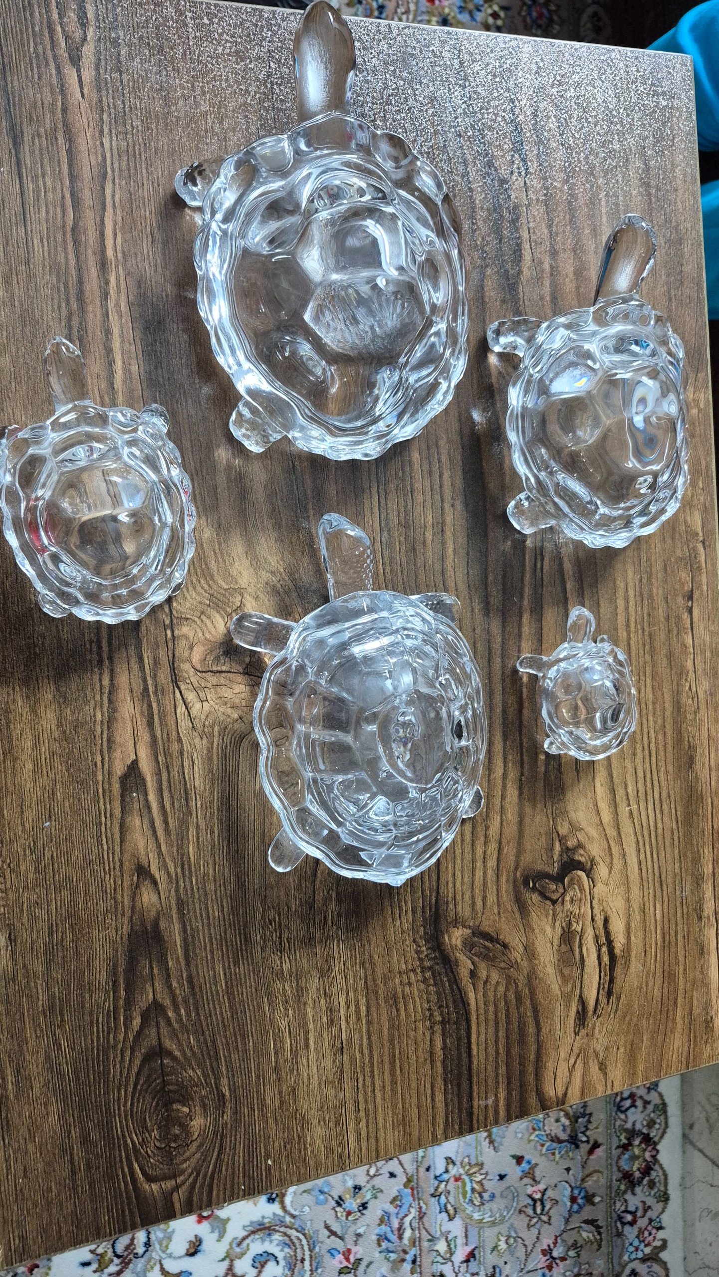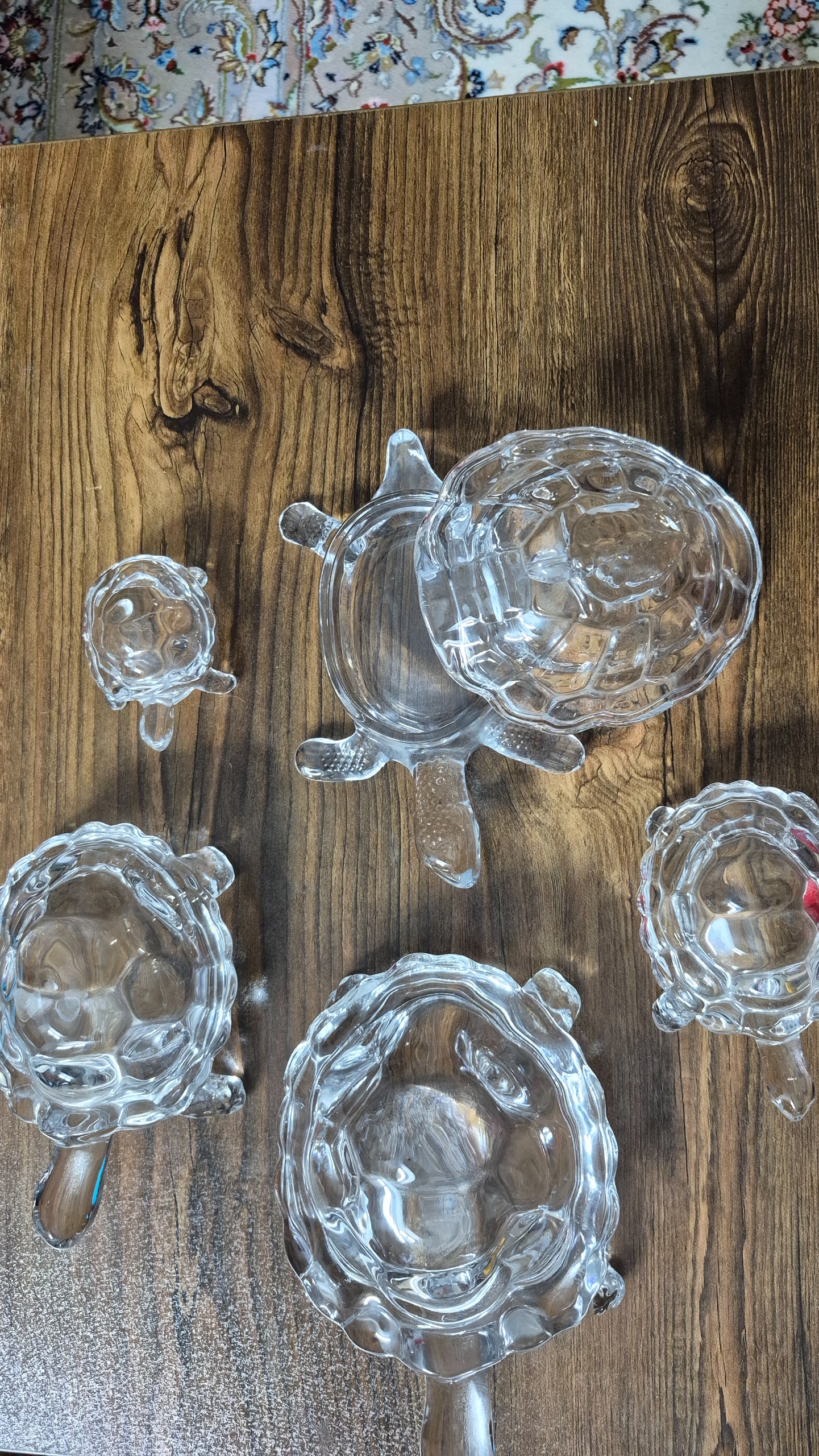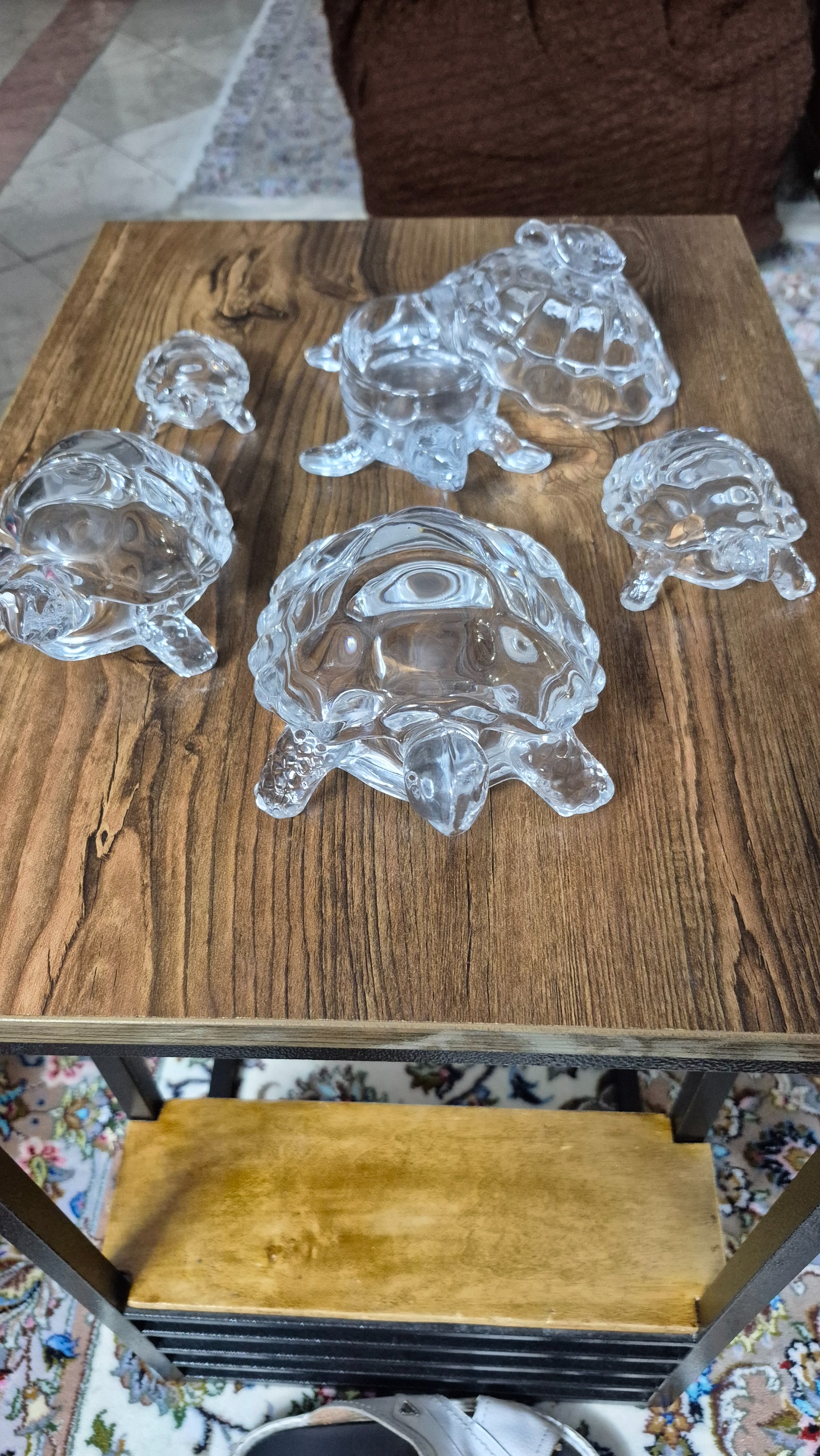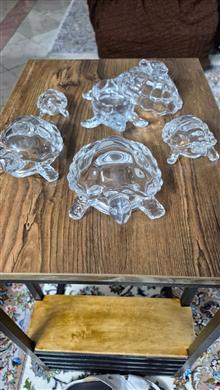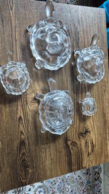5 عدد لاک پشت کریستال که یکیش جای شکلات هست که یک بچه لاک پشت هم پشتش سواره کاملا سالم بدون پریدگی و شکستگی مناسب دکور و کادو