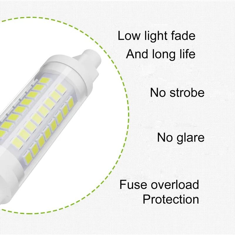 صرفه جویی در انرژی: لامپ LED با قطر 78 میلی متر R7S تنها 7 وات مصرف می کند و 700 لومن ساطع می کند. این می تواند مستقیماً یک لامپ هالوژن 70 واتی را جایگزین کند و تا 85 درصد در قبض برق شما با طول عمر 25000 ساعت صرفه جویی کند.
