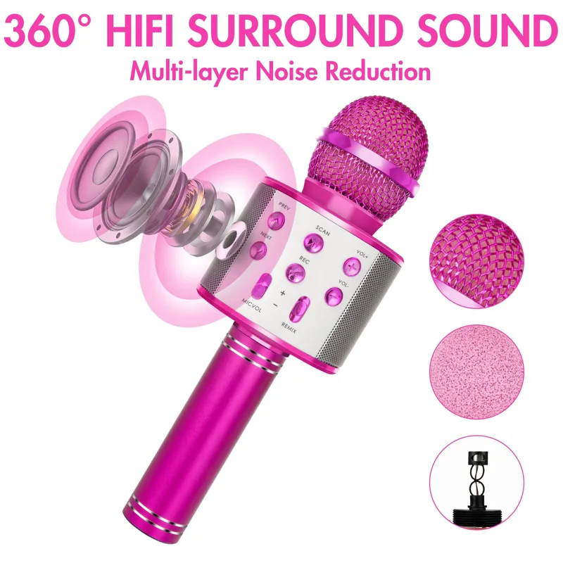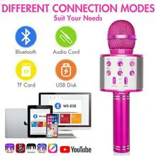 این میکروفون یک میکروفون همه کاره با قابلیت اتصال بی سیم (بلوتوثی) و باسیم به تلفن های هوشمند اندروید و IOS ، انواع پلیرها و کامپیوتر می باشد. این دستگاه از جنس بهترین مواد ABS و آلومینیوم ساخته شده است . به طور خلاصه می توان امکانات این میکروفون را به این صورت نام برد: بلوتوث نسخه 3, ,ورودی حافظه فلش یا USB ، شیار مخصوص به کارت حافظه، دارای پورت AUX، باتری لیتیومی قابل شارژ ، رادیو، دکمه های تنظیم صدا، ضبط صدا، کارائوکه، 4 حالت تغییر صدا , اسپیکر های قدرتمند و ....